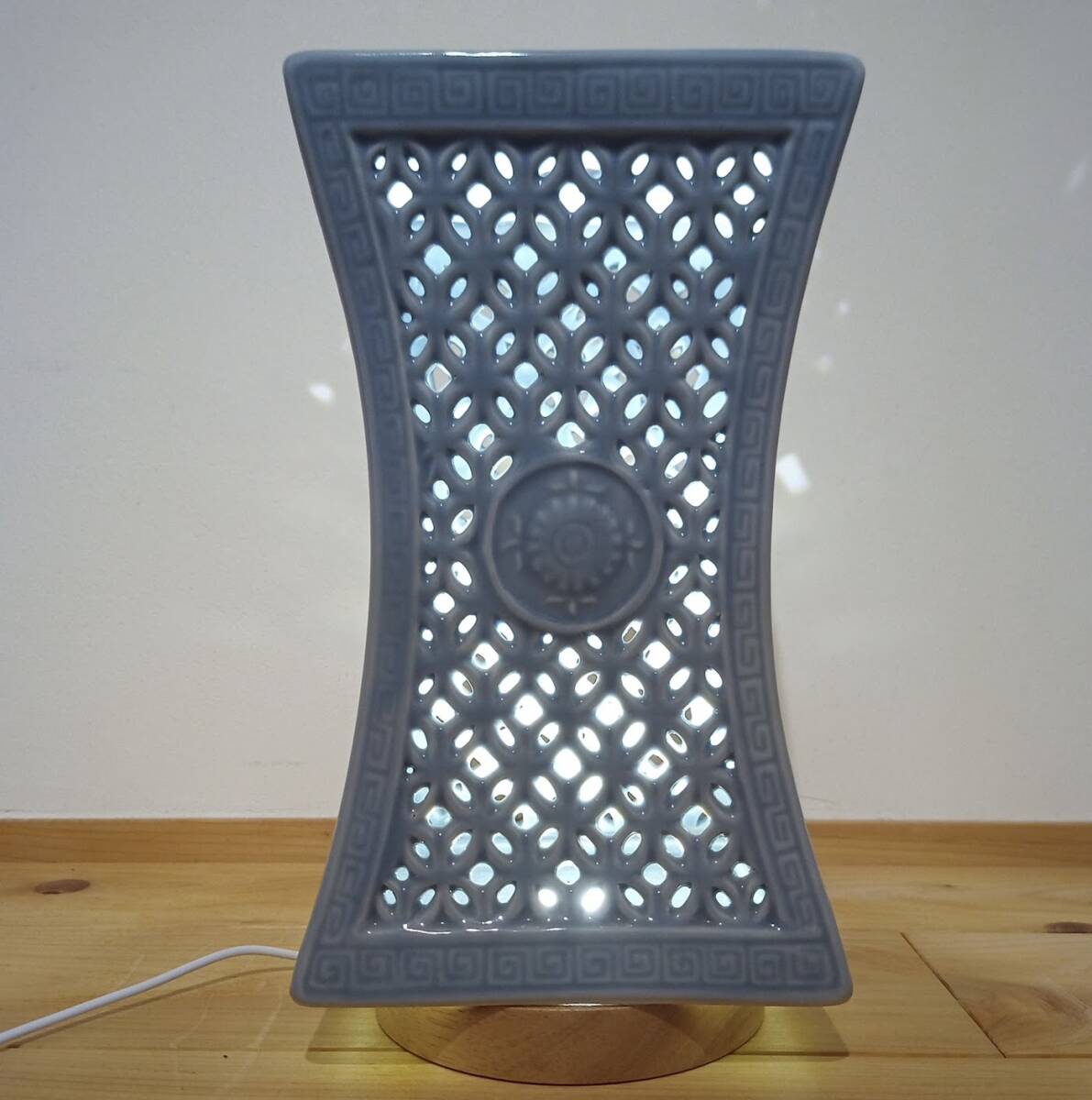 瀬戸焼 青磁 陶器の灯り LEDライト付き 透かし彫りが美しい 收藏