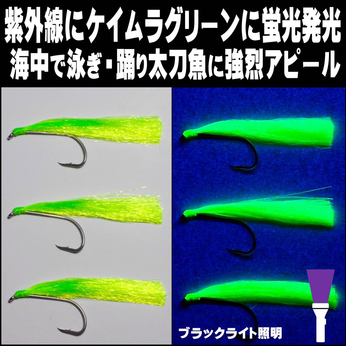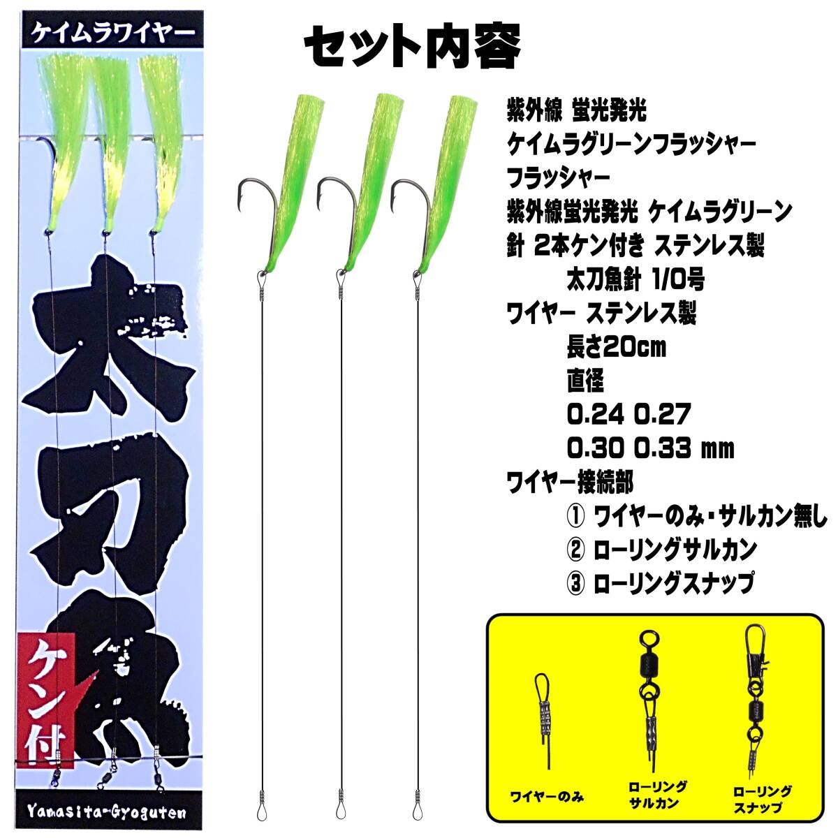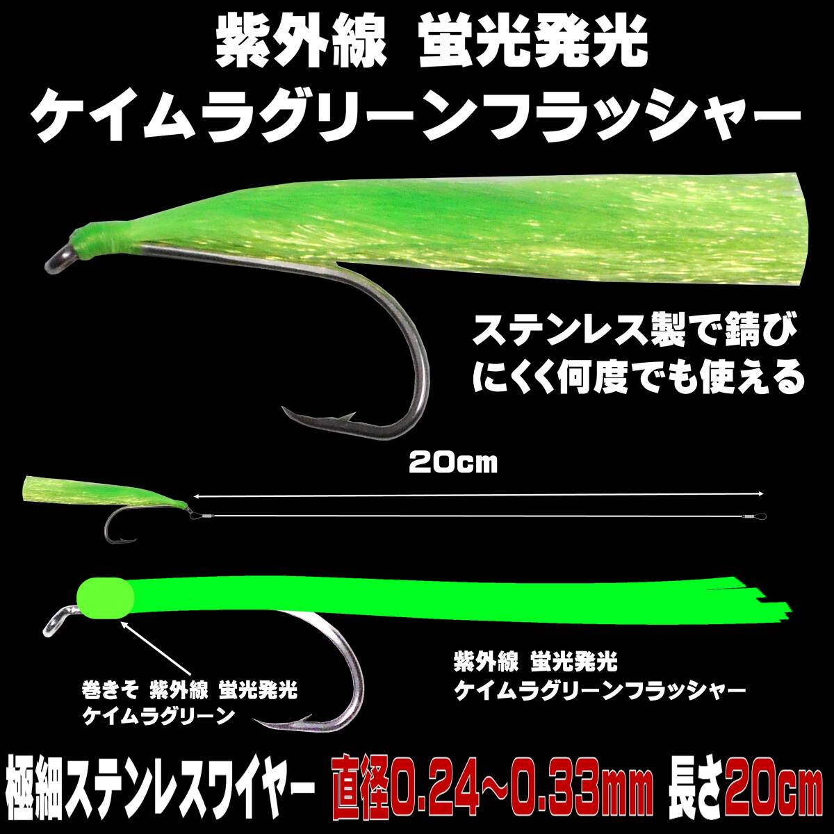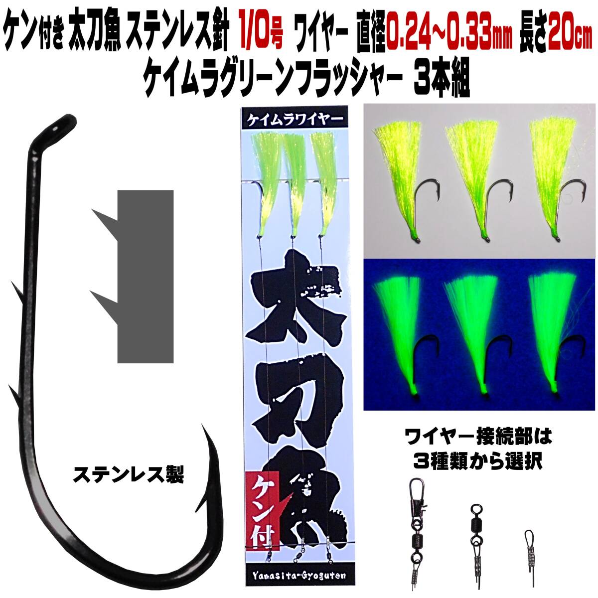 太刀魚 仕掛け ステンレス製 2本ケン付 太刀魚針 1/0号 ワイヤー直径0.24〜0.33mm 20cm ケイムラグリーンフラッシャー3本組 太刀魚仕掛け 收藏