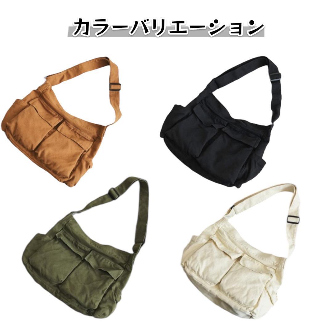 ショルダーバッグ メンズ レディース 斜めがけ 黒 ブラック a4 大容量 トートバッグ 帆布 キャンバス アメカジ レトロデザイン 黒A15 收藏