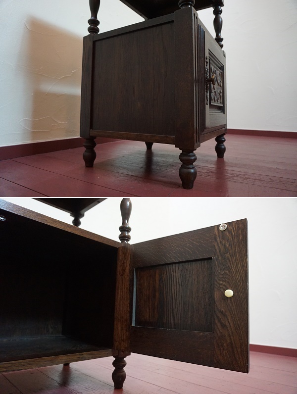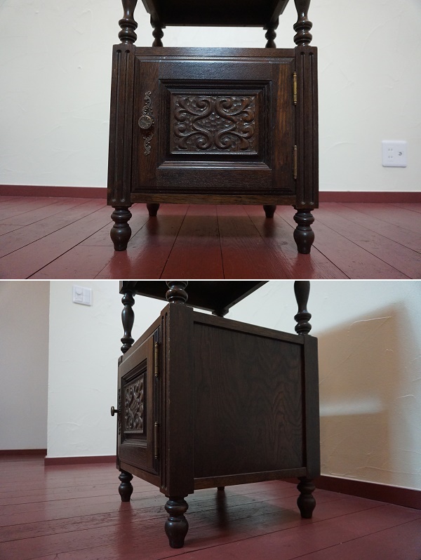 西洋 クラシカル キャビネット サイドテーブル コンソール オーク材 飾り棚 電話台 TEL台 シェルフ 洋館 英国 アンティーク 彫刻 收藏