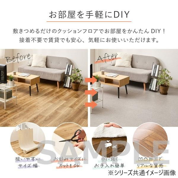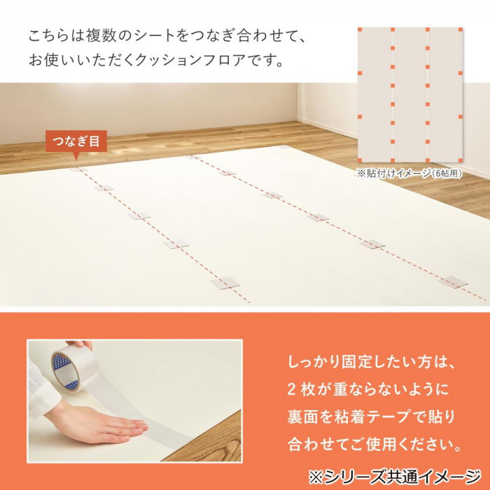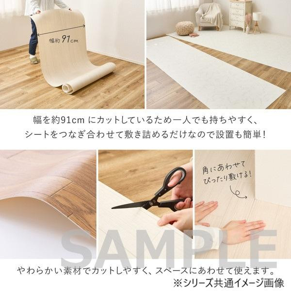 | 敷くだけで簡単に床の色を変えられるクッションフロアです。お部屋の雰囲気がガラリと変えられるので気軽に模様替えができ、床への傷や汚れ防止にもなります。1枚の幅が約91cmずつにカットされているので扱いやすく、つなぎ合わせて敷き詰めるだけなので設置も簡単です。やわらかい素材でカットしやすく、スペースにあわせてお使いいただけます。 ※サイズには2cm程度の誤差がある場合があります。 |