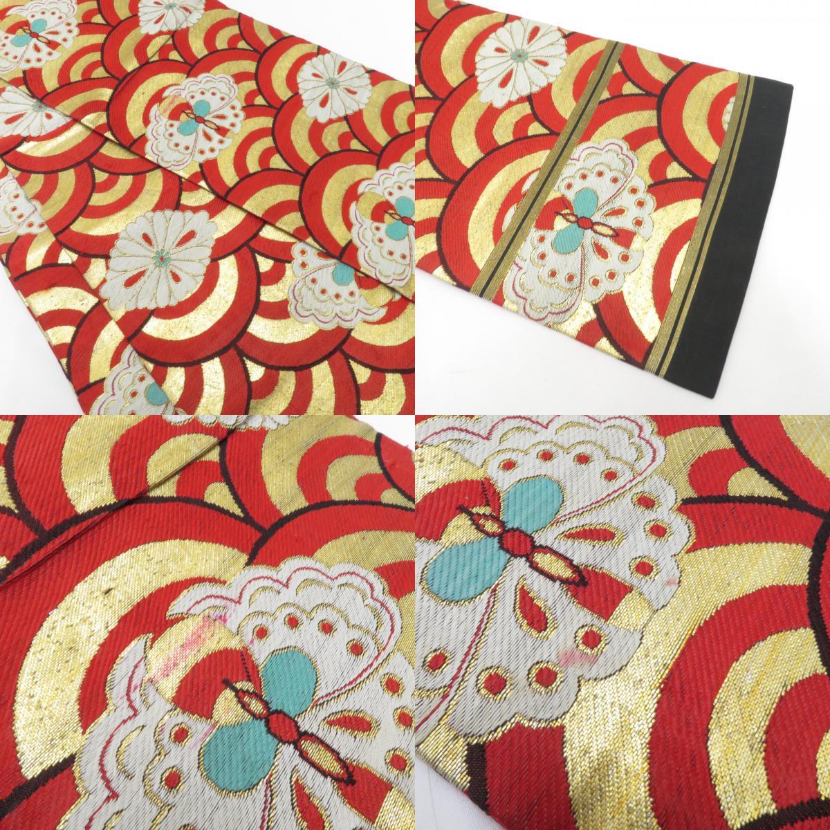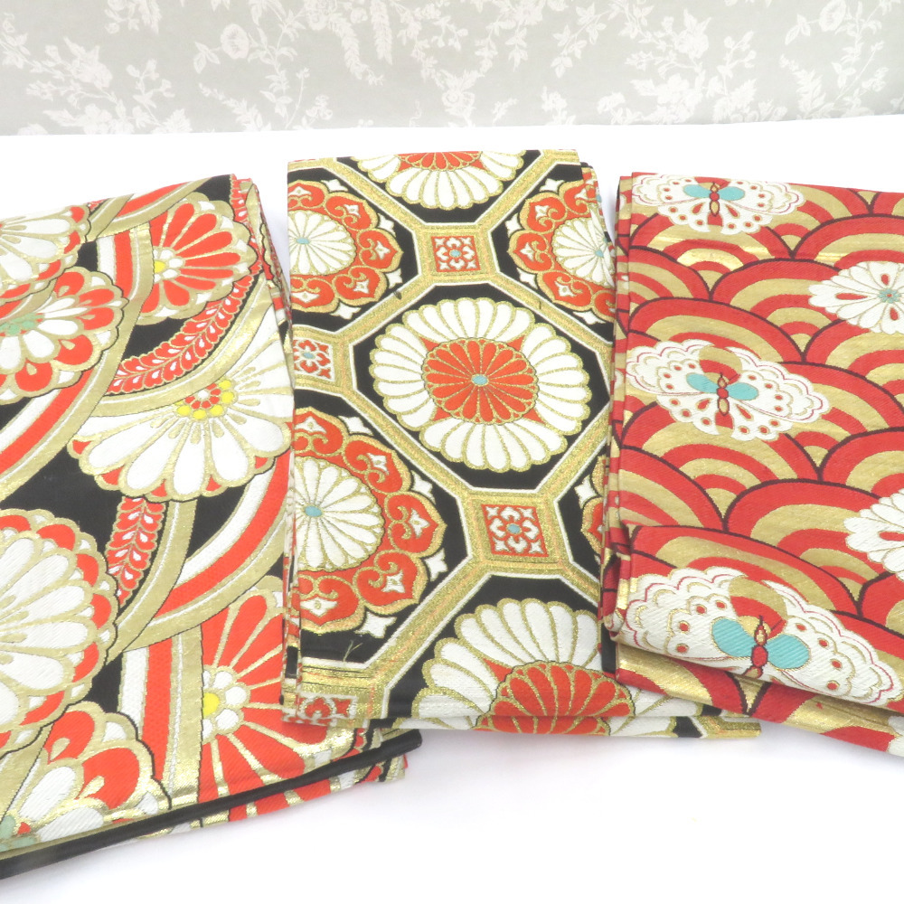 | 子供帯 まとめて3点セット 正絹 丸帯仕立て 黒×金×オレンジ 赤×金×白 七五三 レトロ 大正ロマン アンティーク 舞台衣装 |
