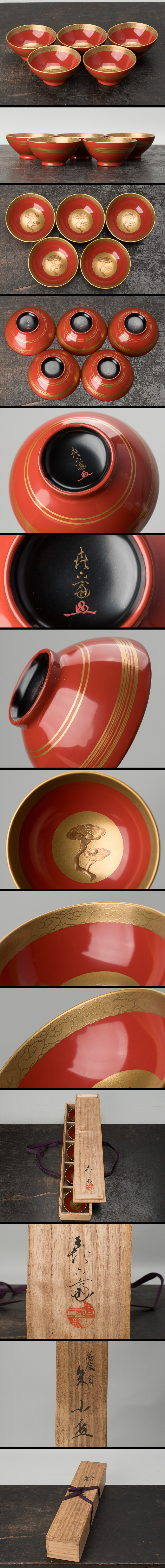 【千h1224】井波喜六斎 蒔絵 盃 5客 共箱 漆器 酒器 盃 ぐい呑 收藏