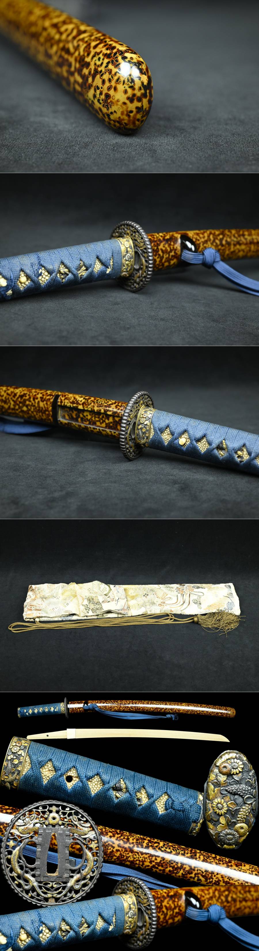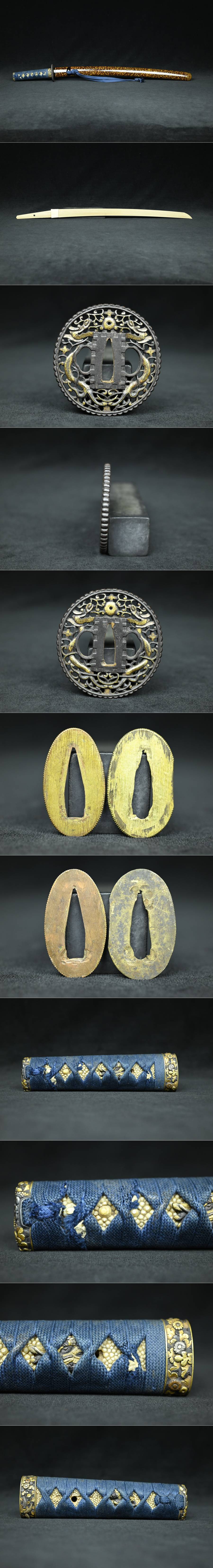 【昊】時代 武士図目貫 唐草透鍔 花草図縁頭 変わり鞘 外装拵え 刀装具[NS41Is] 收藏