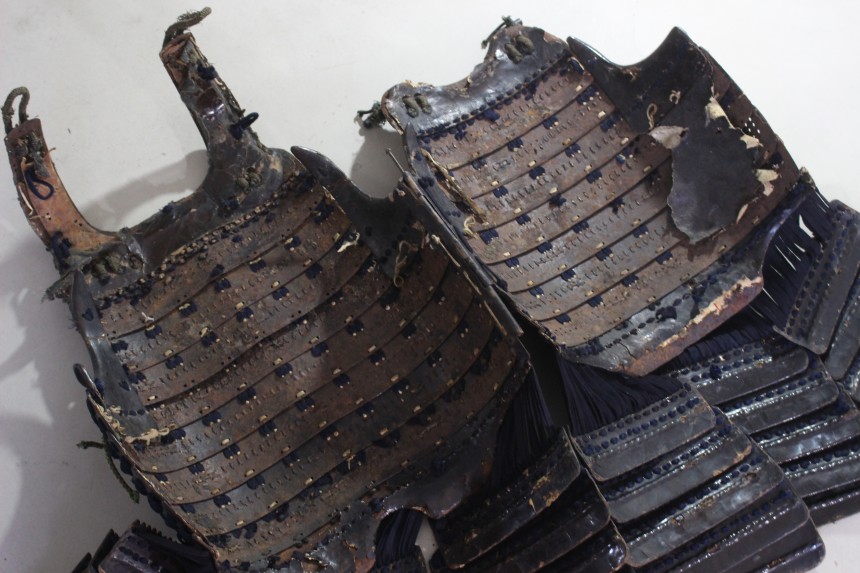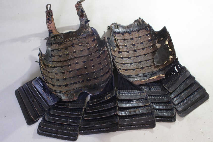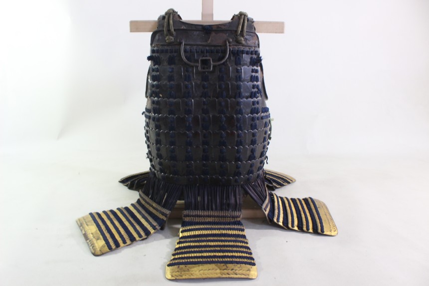 伊予札二枚胴 江戸 鉄、草摺:革、黒漆塗、金箔押 4.9㎏ 甲冑/武具 收藏