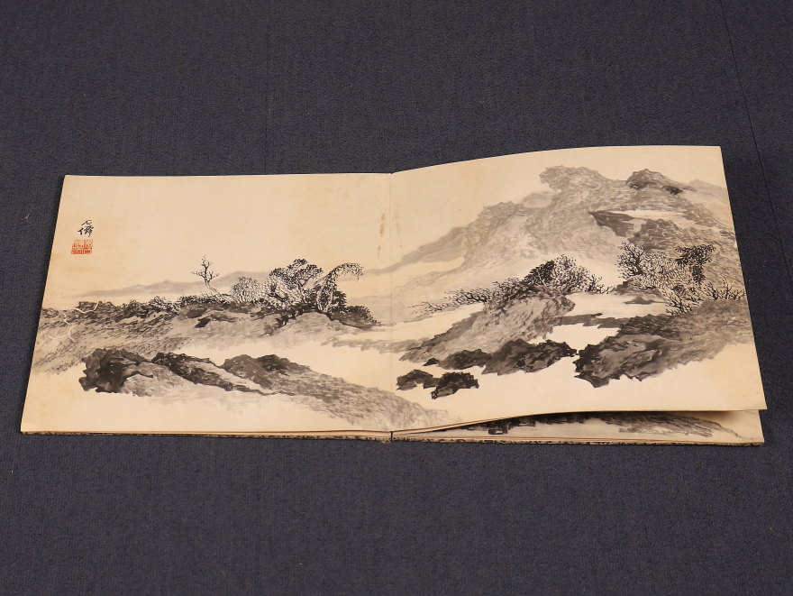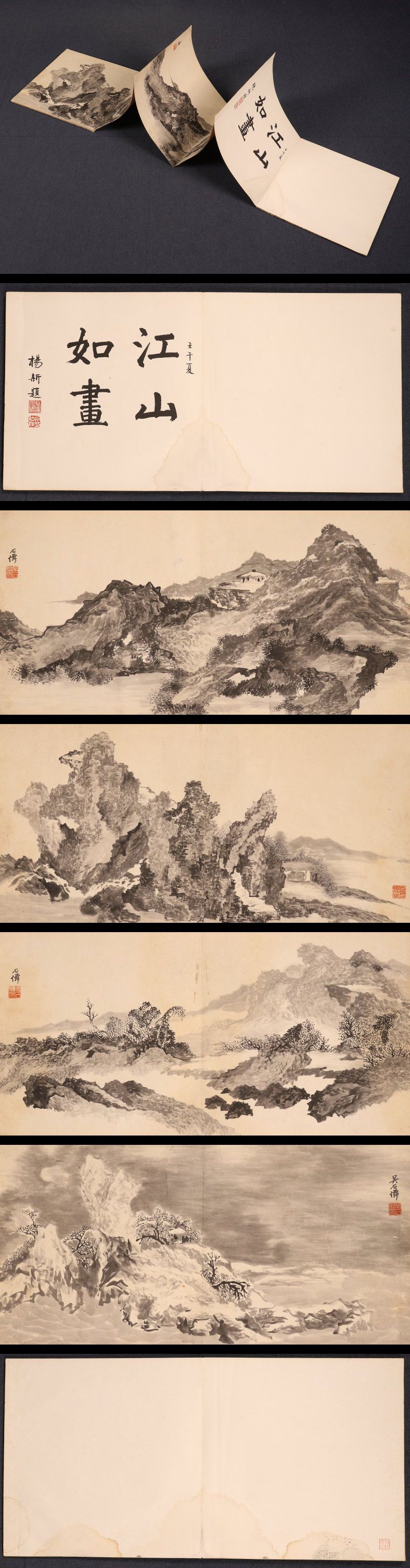 【模写】【伝来】am4084〈呉石僊 楊新〉画帖 山水図 中国画 清代 書画鑑定家 收藏