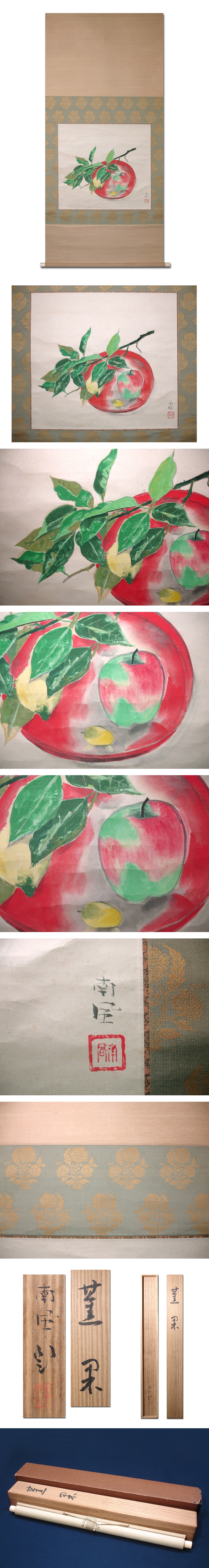 慶應◆文化勲章日本画家【堅山南風】真筆 紙本彩色『董果』 日本画掛軸 共箱・二重箱付 收藏