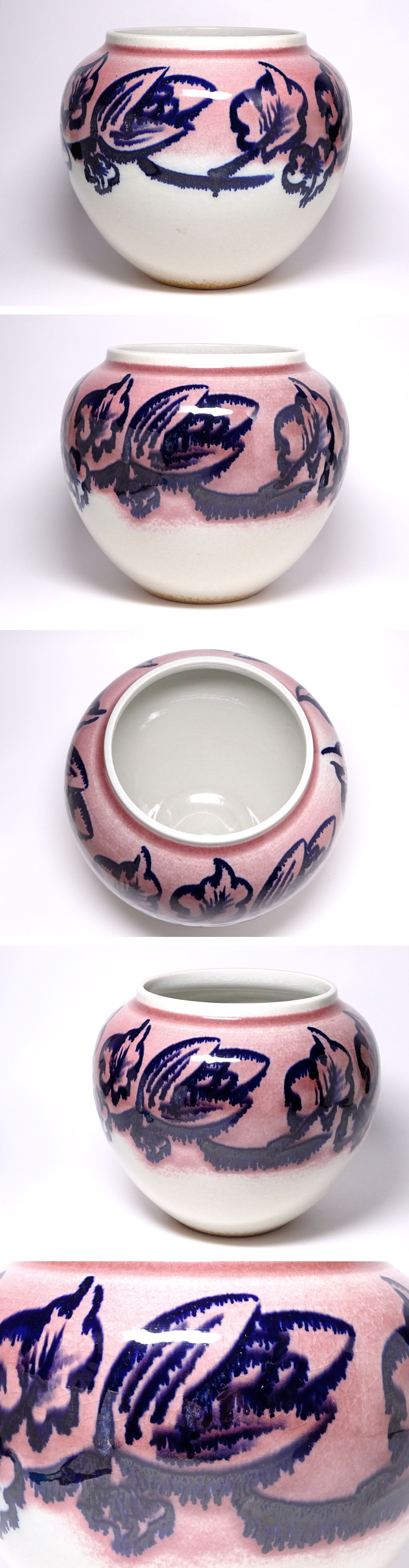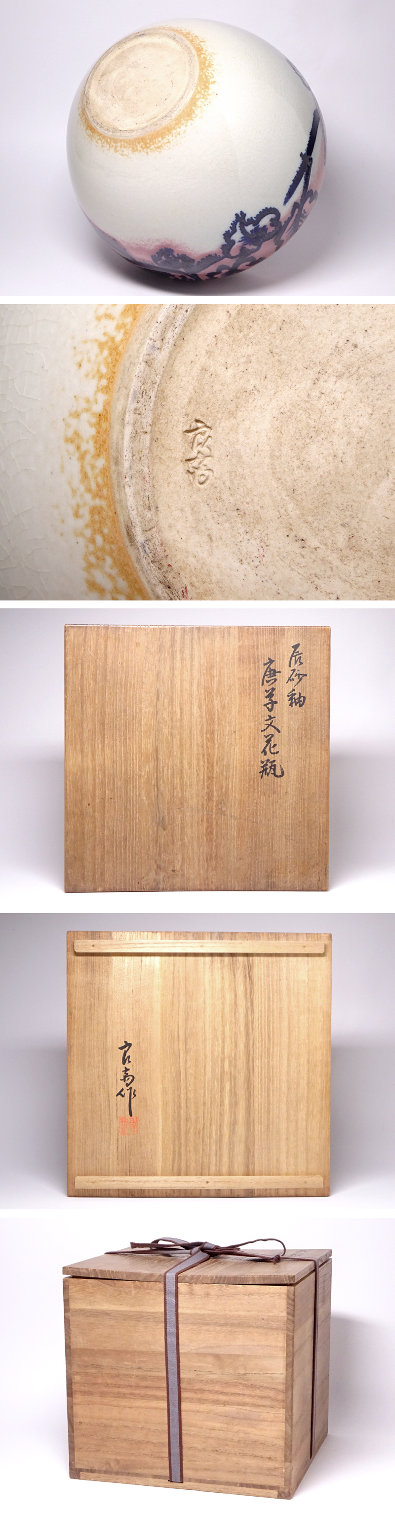 慶應◆日本芸術院会員【三代井上良斎】作 辰砂釉唐草文花瓶 高さ17cm 共箱付 二代良斎・板谷波山に師事 收藏