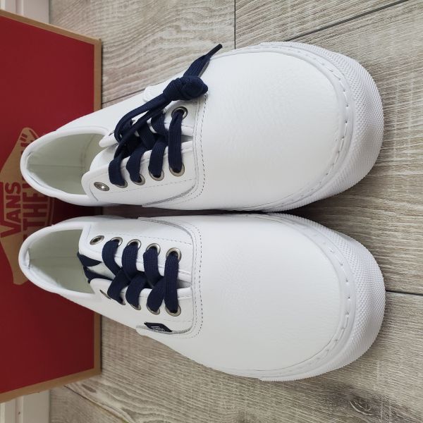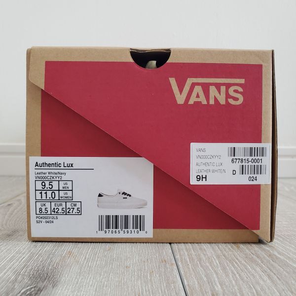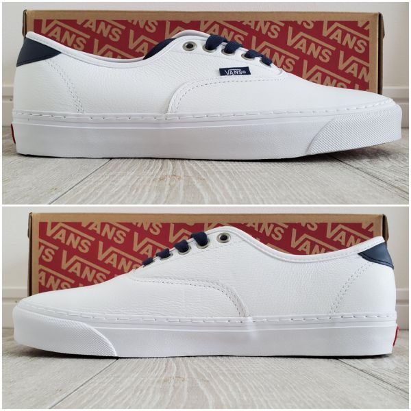 VANSバンズ■新品未使用 2024年 USA企画 廃版 AUTHENTIC LUX LEATHER オーセンティック US9.5 JP27.5 本革 レザー 白×紺 定価9350 收藏