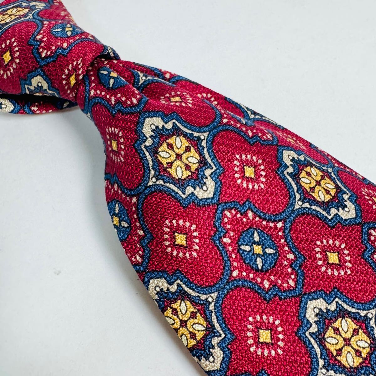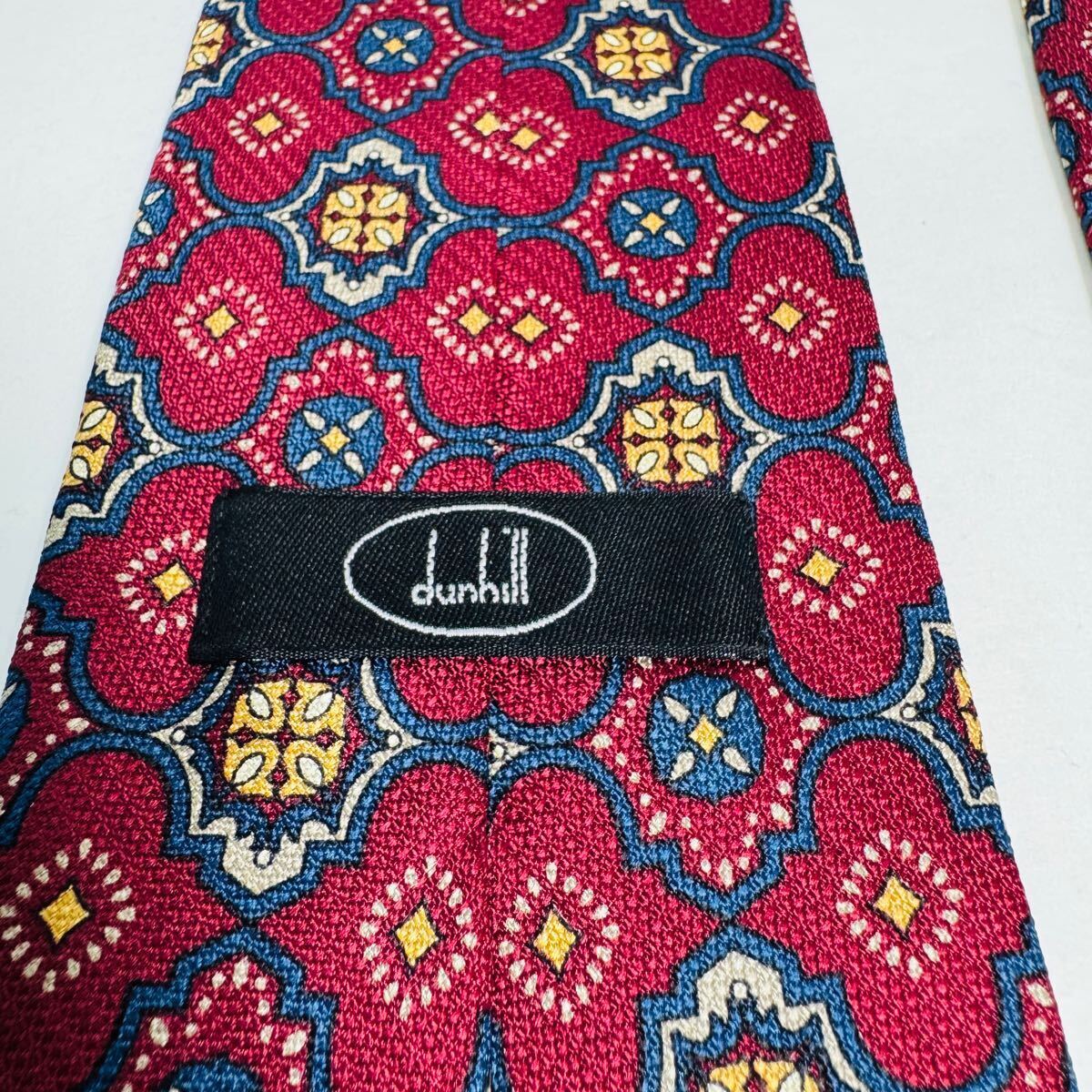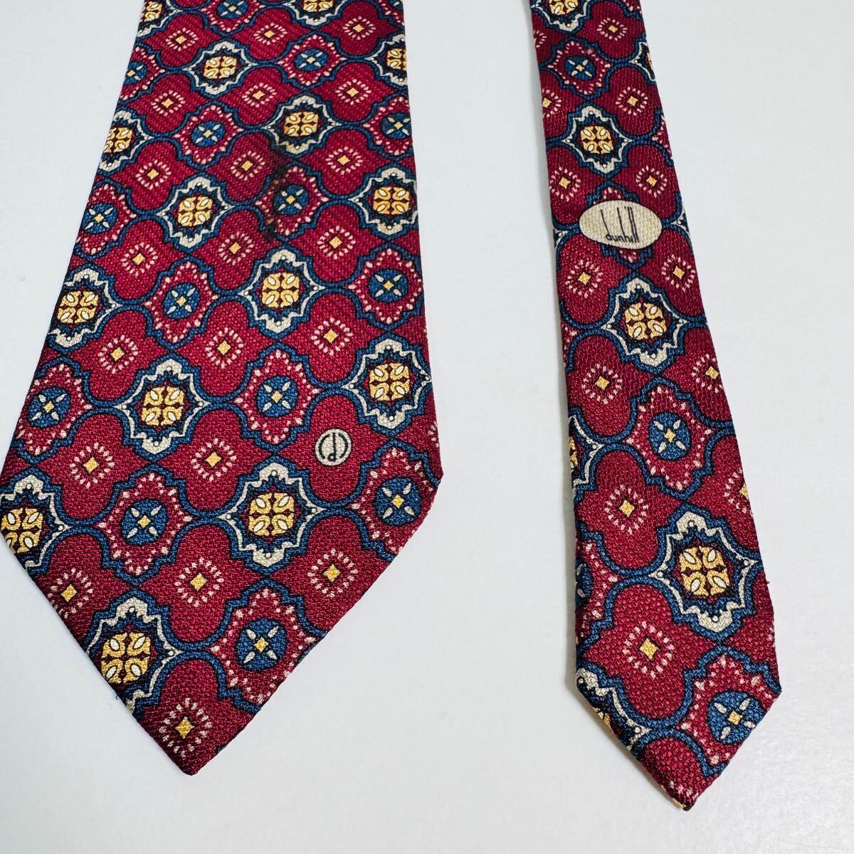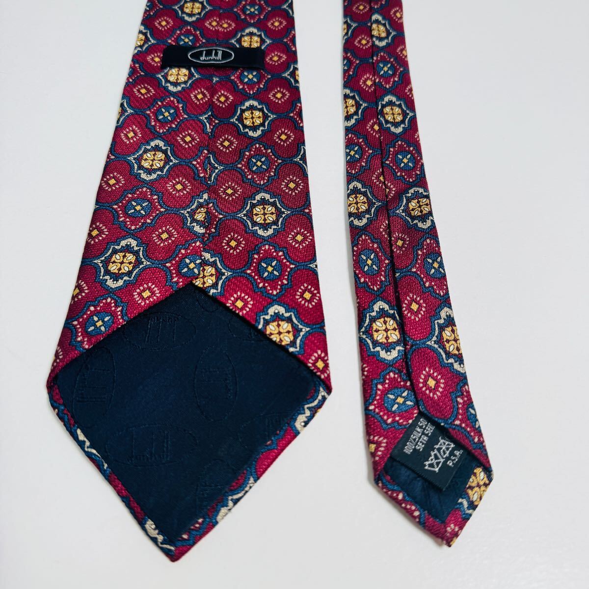 dunhill ダンヒル ネクタイ ヴィンテージ イタリア製 総柄 シルク100% レッド系 高級ブランド ビジネス スーツ 紳士 メンズタイ Q34 收藏