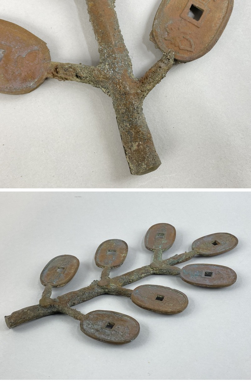 ◇商品情報◇ | 当店の商品をご覧いただきありがとうございます!! 枝銭 天保通宝 7枚 貨幣 古銭 當百 重量320g 天保通寳 天保通貨 天保銭 穴銭 鋳銅 縁起物 になります。 経年相応の擦れ、汚れ、傷、錆、緑青などがございます。 縦:約23.5cm、横:約13.5cm(いずれも最大) 重量:約320g 状態などは画像を参考の上、ご検討をよろしくお願い致します。 ※目視チェックをしていますが、表記漏れや見落としや細かな擦れ・薄汚れなどがある場合もございますので予め画像をご確認の上でご入札をお願いいたします。 商品のトップ画像端に写っている茶筅はサイズ比較用の備品ですので付属はしません | ||||||||||||||||||||||||||||||