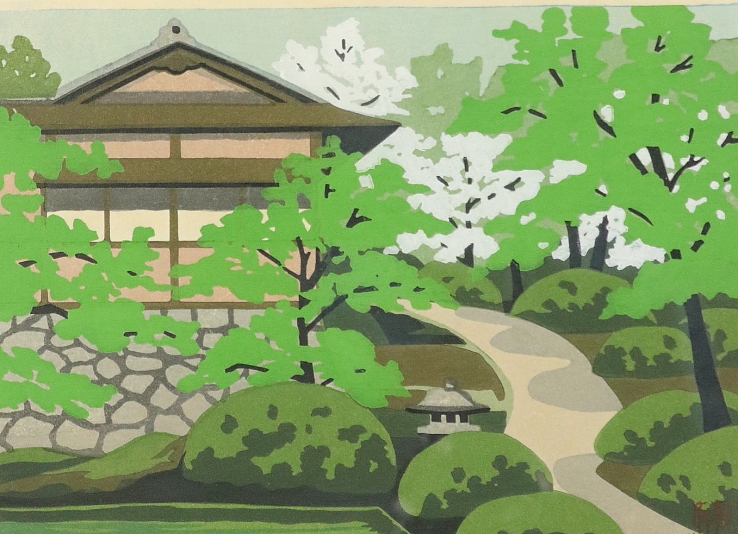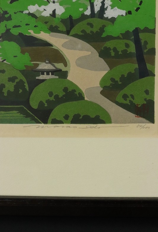 11214■【真作】井堂雅夫 「修学院」 木版 直筆サイン 限定200部 吉田光甫に師事 木版画家 額装 收藏