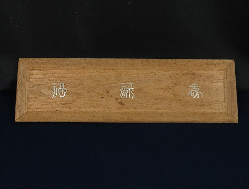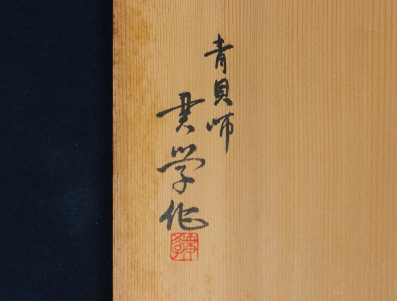 11114■大原貫学 螺鈿盆 「福禄寿」 共箱 長盆 青貝 大阪の人 茶道具 煎茶道具 收藏