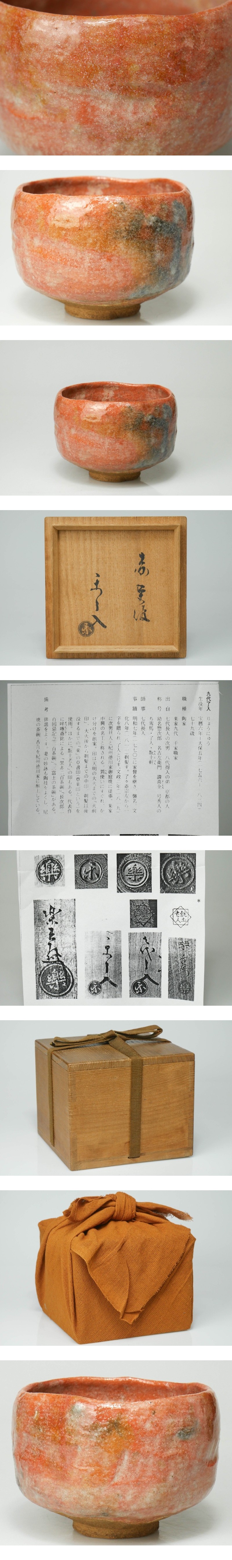 【 幸 茶匠の蔵 】『九代楽吉左衛門(了入)』造 赤 茶碗 共箱◆当店保証 茶道具『茶人の言葉』 收藏