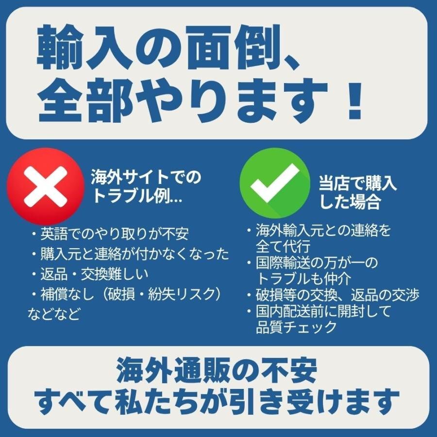 | [納期について] ■通常2~4週間でのお届けを予定をしておりますが、天候、通関、国際事情により輸送便の遅延が発生する可能性や、仕入・輸送費高騰や通関診査追加等による価格のご相談の可能性もございますことご了承いただいております。 ■弊社は製造元ではないので、納期の遅れに関しては一切責任を負いかねます。 [取り付けについて] ■取り付け説明書は基本的に付属しておりません。お取付に関しましては専門の業者様とご相談お願いいたします。 ■フィッテングや車検対応の有無については、基本的に画像と説明文よりお客様の方にてご判断をお願いしております。 ■USパーツは国内の純正パーツを取り外した後、接続コネクタが必ずしも一致するとは限らず、加工が必要な場合もございます。 ■弊社は海外パーツの輸入販売業のため、製品のお取り付けや加工についてのサポートは行っておりません。専門店様と解決をお願いしております。 [配送について] ■海外倉庫から到着した製品を、再度国内で検品を行い、日本郵便または佐川急便にて発送となります。 ■大型商品に関しましては、配送会社の規定により個人宅への配送が困難な場合がございます。その場合は、会社や倉庫、最寄りの営業所での受け取りをお願いする場合がございます。 [キャンセル、返品について] ■輸入商品のためイメージ違いやご注文間違い、納期が遅い等のお客様都合ご返品はお断りをさせていただいておりますが、弊社条件を満たしている場合は ご購入金額の30%の手数料を頂いた場合に限りご返品をお受けできる場合もございます。 (ご注文と同時に商品のお取り寄せが開始するため)(30%の内訳は、海外返送費用・関税・消費全負担分となります) ■初期不良の場合は商品到着後7日以内にご連絡下さいませ。 [そのほか] ■配送遅延、商品違い等によってお客様に追加料金が発生した場合や取付け時に必要な加工費や追加部品等の、商品代金以外の弊社へのご請求には一切応じかねます。 ■輸入消費税が追加課税される場合もございます。その場合はお客様側で輸入業者へ輸入消費税のお支払いのご負担をお願いする場合がございます。 ■商品説明文中に英語にて”保証”関する記載があっても適応はされませんのでご了承ください。 ■輸入品につき、商品に小傷やスレなどがある場合がございます。商品の発送前に念入りな検品を行っておりますが、運送状況による破損等がある場合がございますので、商品到着後は速やかに商品の確認をお願いいたします。 ■商品の破損により再度お取り寄せとなった場合、同様のお時間をいただくことになりますのでご了承お願いいたします。 ■弊社の責任は、販売行為までとなり、本商品の使用における怪我、事故、盗難等に関する一切責任は負いかねます。 ■他にもUSパーツを多数出品させて頂いておりますので、ご覧頂けたらと思います。 ■USパーツの輸入代行も行っておりますので、ショップに掲載されていない商品でもお探しする事が可能です!!また業販や複数ご購入の場合、割引の対応可能でございます。お気軽にお問い合わせ下さい。 【お問い合わせ用アドレス】 contact@usdm.co.jp | |