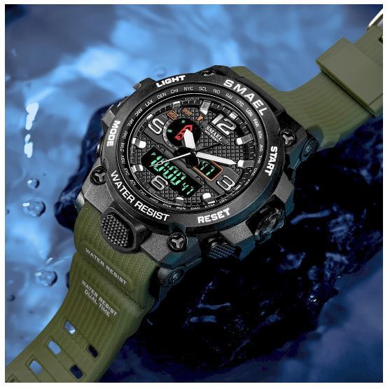 送料無料 SMAEL 1545 ArmyGreen スマイル腕時計 メンズ ウォッチ 防水 スポーツ アナログ デジタル クオーツ 多機能 ミリタリー ライト 收藏
