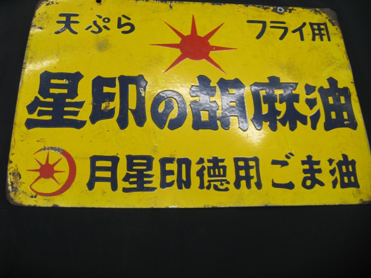 ★ 昭和レトロ 天ぷら フライ用 星印の胡麻油 月星印徳用 ごま油 両面看板 鉄板看板 ホーロー?看板 ★ 收藏