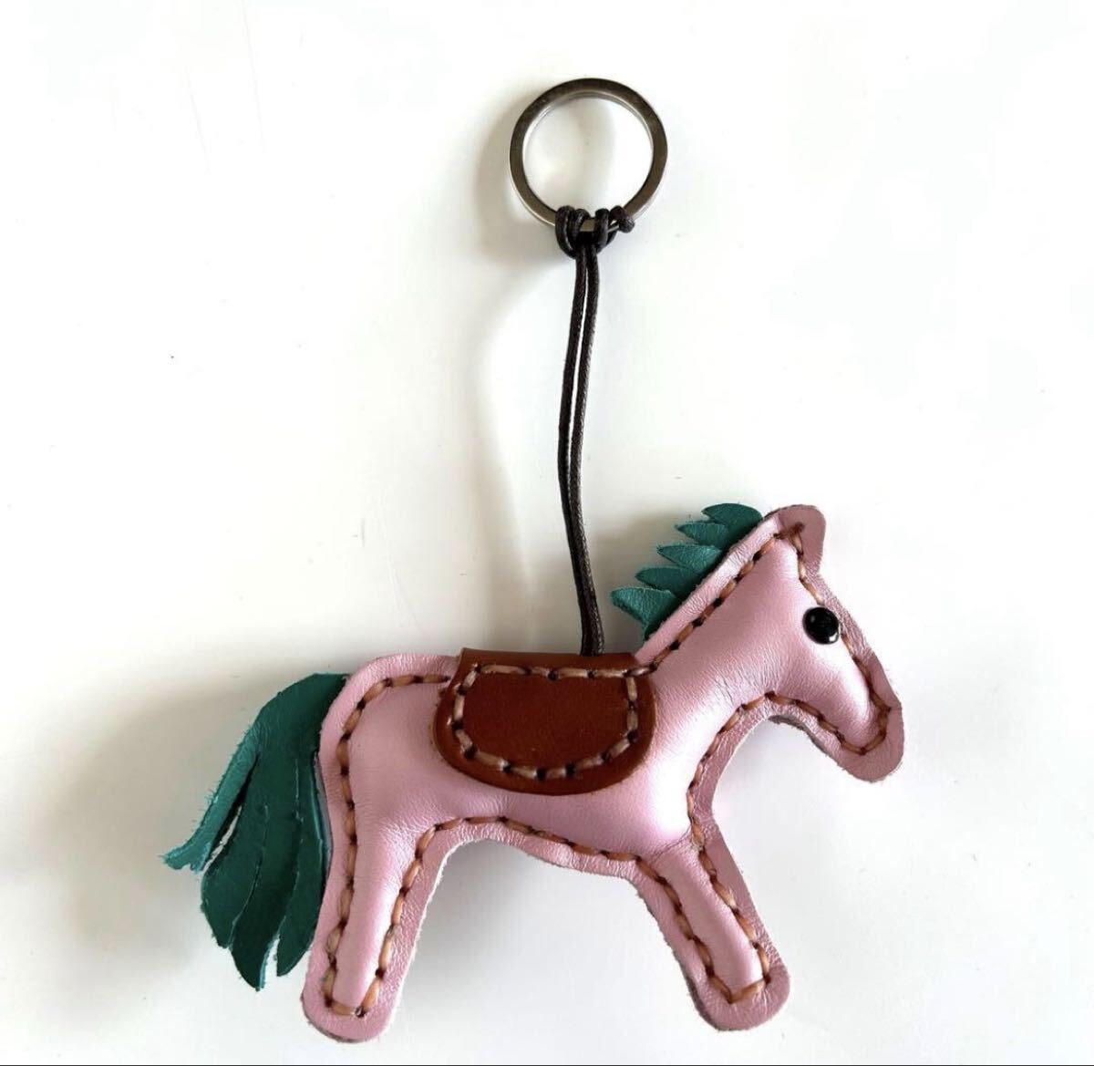 ★送料無料★新品 本革キーホルダー ハンドメイド レザーキーホルダー バッグチャーム レザークラフト うま 馬 收藏