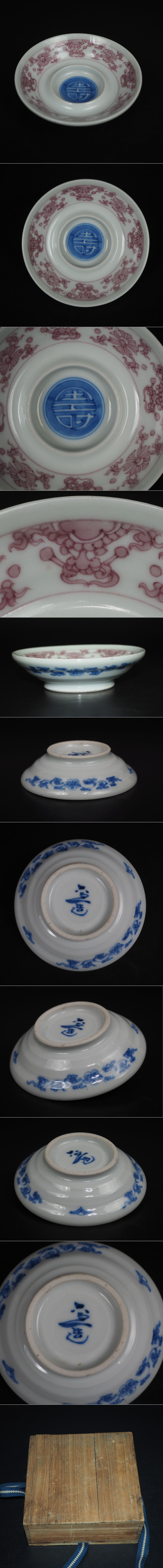 【金富士】 四代清水六兵衛 造 染付釉里紅盃台 ★希少★ 合箱 検/楽山紫砂九谷備前萩焼常滑宝生伊万里中国骨董古玩 收藏