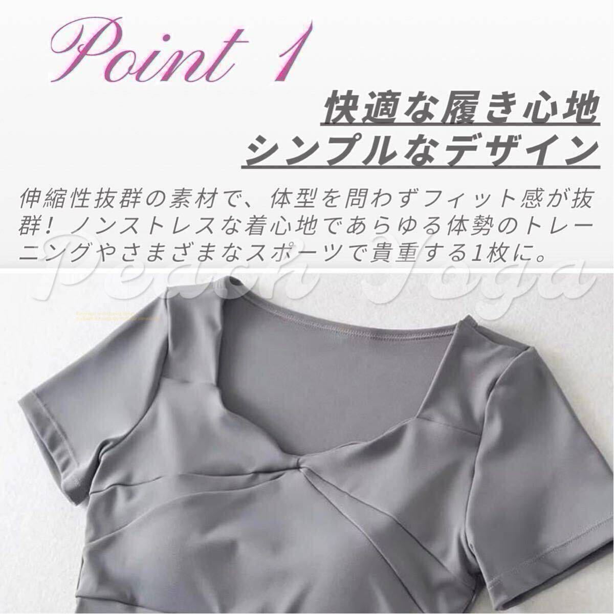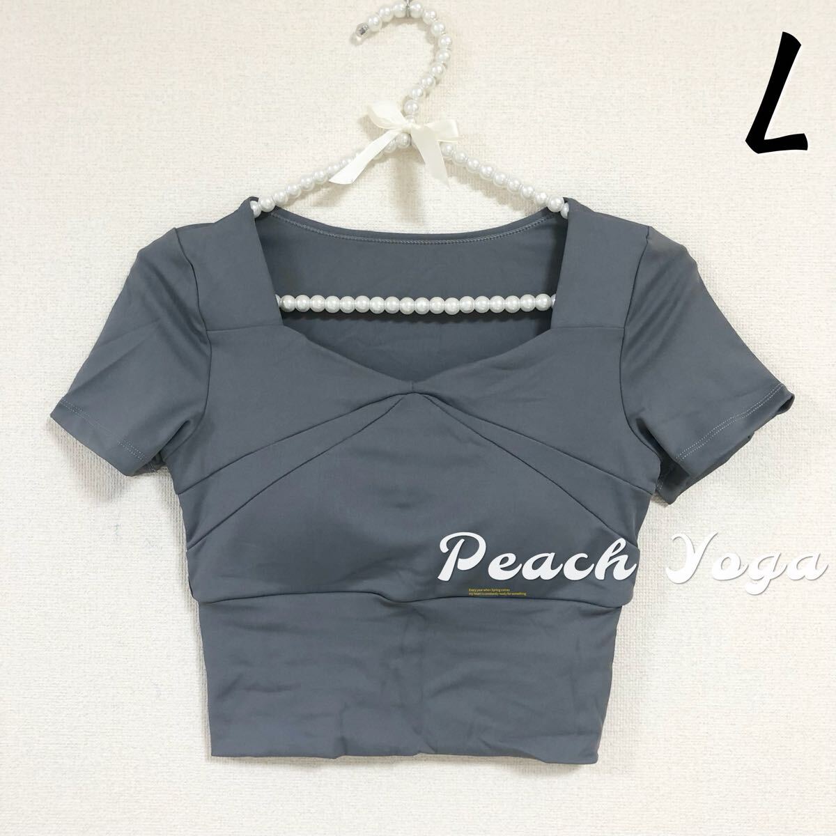 グレーLサイズ スポーツブラ単品 7色展開半袖ブラトップ ヨガウェア スポーツトップス ピラティス ホットヨガ パッド取外可能 ジム 收藏