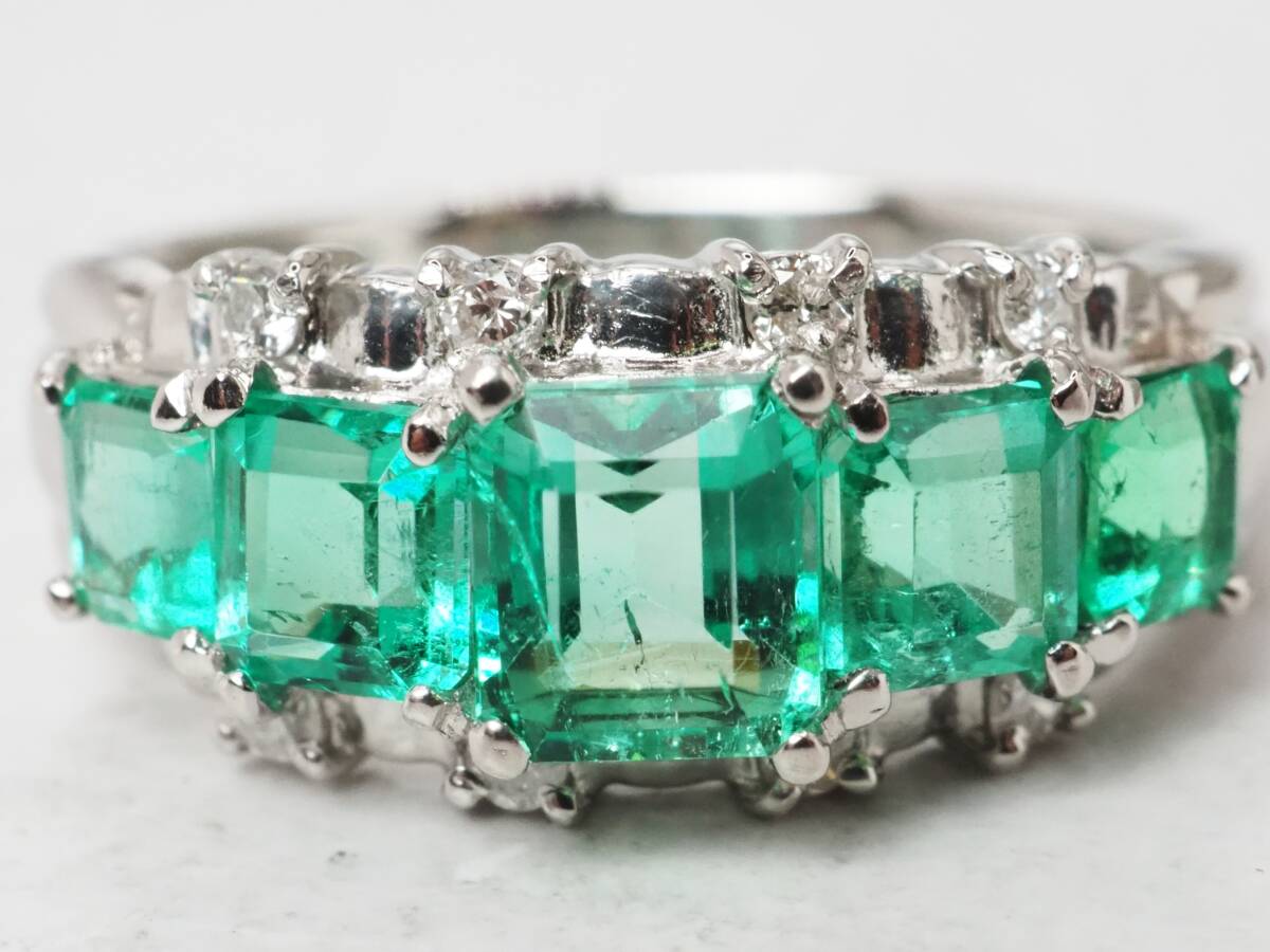 【8372E】Pt1000 天然エメラルド 天然ダイヤモンド 1.61ct/0.10ct/4.8g/リング 指輪 ♯12.5 收藏