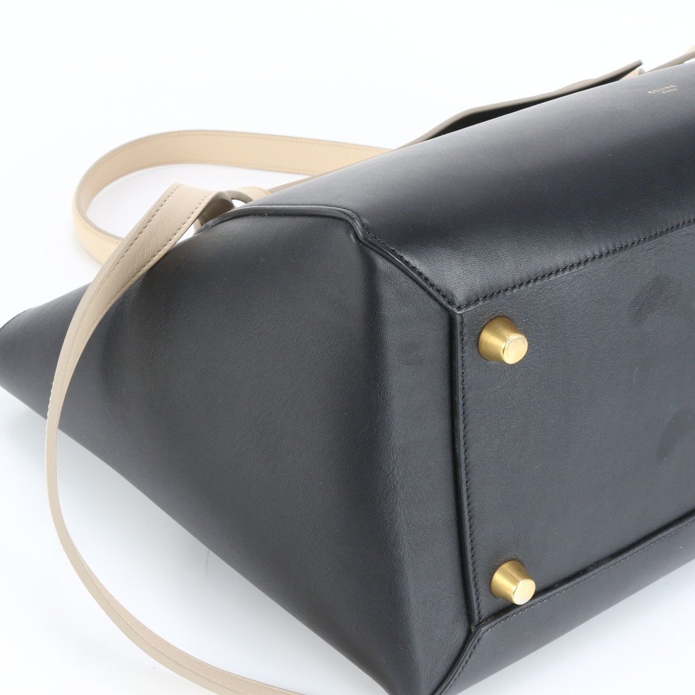 1円■極美品■セリーヌ■スモール ベルトバッグ レザー ハンド トート バイカラー ブラック 黒 A4 本革 レディース EUE CX2-9 收藏