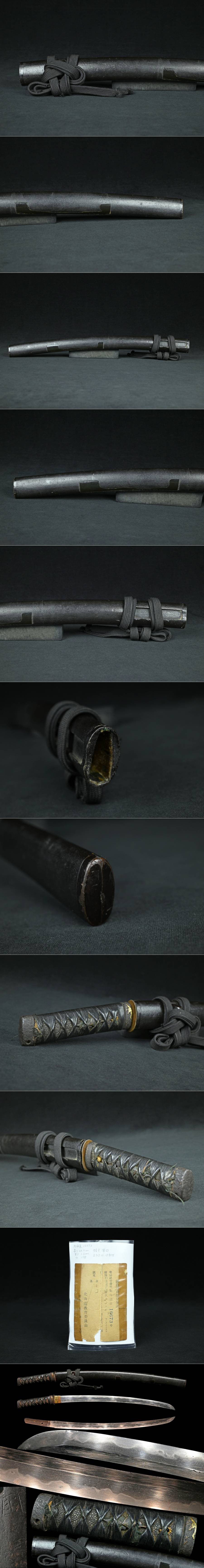 【昊】国□ 在銘 乱れ刃文 刃渡り44.4cm 黒漆塗鞘 刀剣武具[HJ1Ji] 收藏