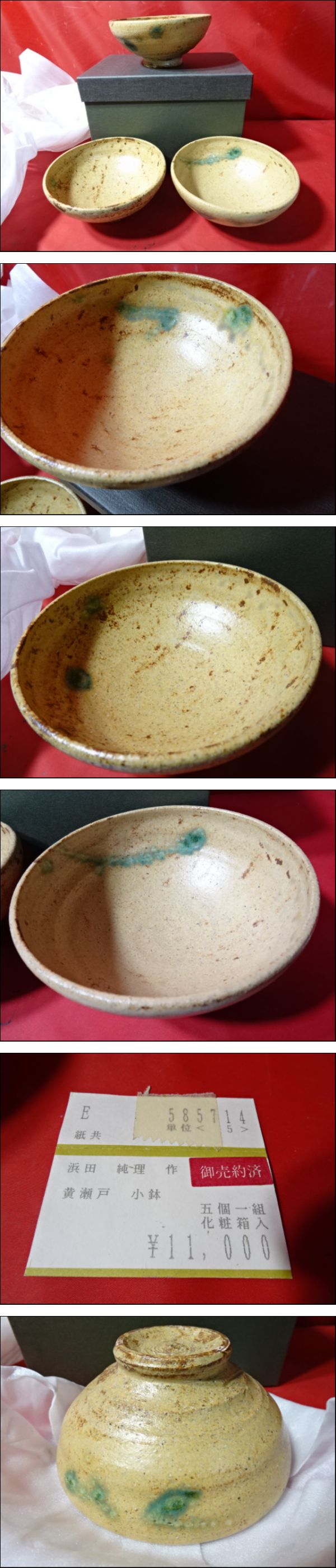 QM-23/黄瀬戸小鉢 3客 浜田純理作 陶号露人 美濃焼 飯碗 茶碗 和食器 伝統工芸品 陶芸品 和食割烹食器 盛付鉢 14cmx6.5cm 未使用 收藏
