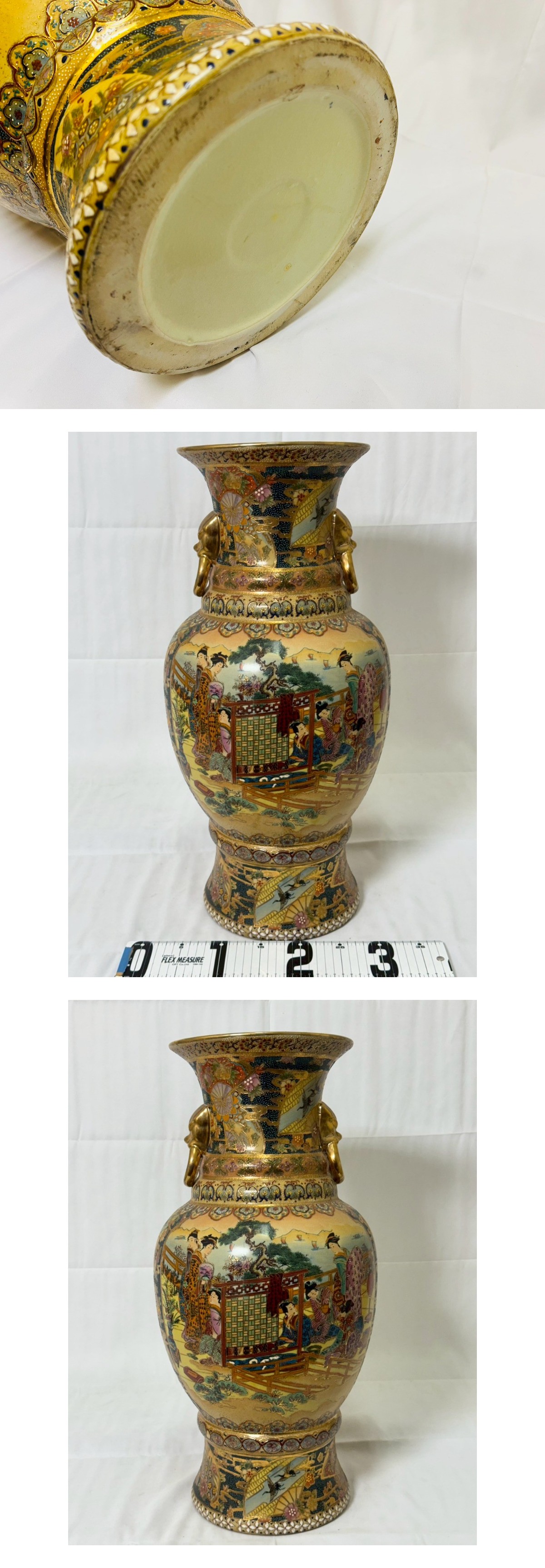 薩摩焼 金襴手 美人山水図 双耳 飾壺 大花瓶 獣耳 金彩 骨董 置物 飾物 伝統工芸品 芸術 古美術 時代物 古玩 初出 売切 中国 長崎買取 收藏