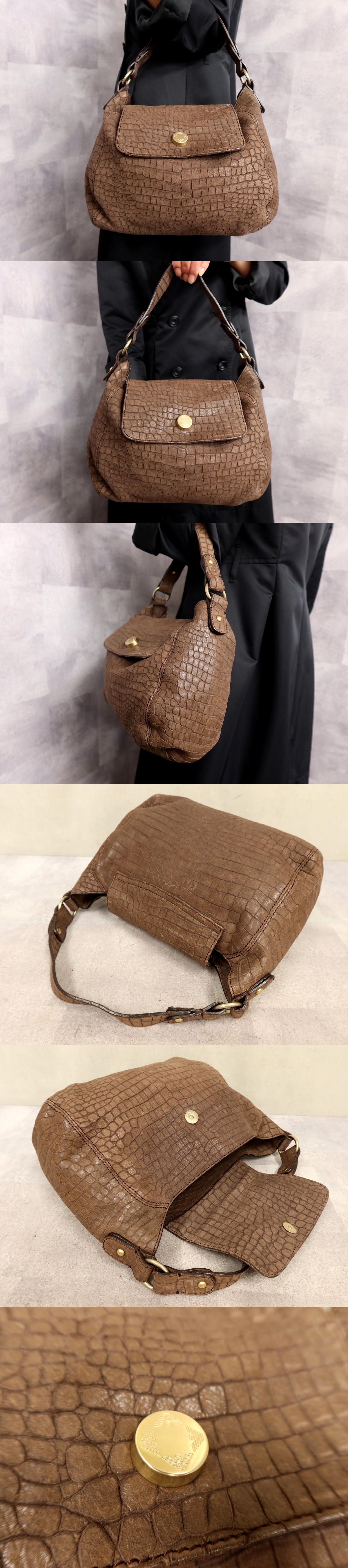 ●超美品●EMPORIO ARMANI エンポリオ アルマーニ●ロゴ金具●クロコダイル 型押し レザー●ハンド バッグ●ブラウン●G金具●B5●Js62234 收藏