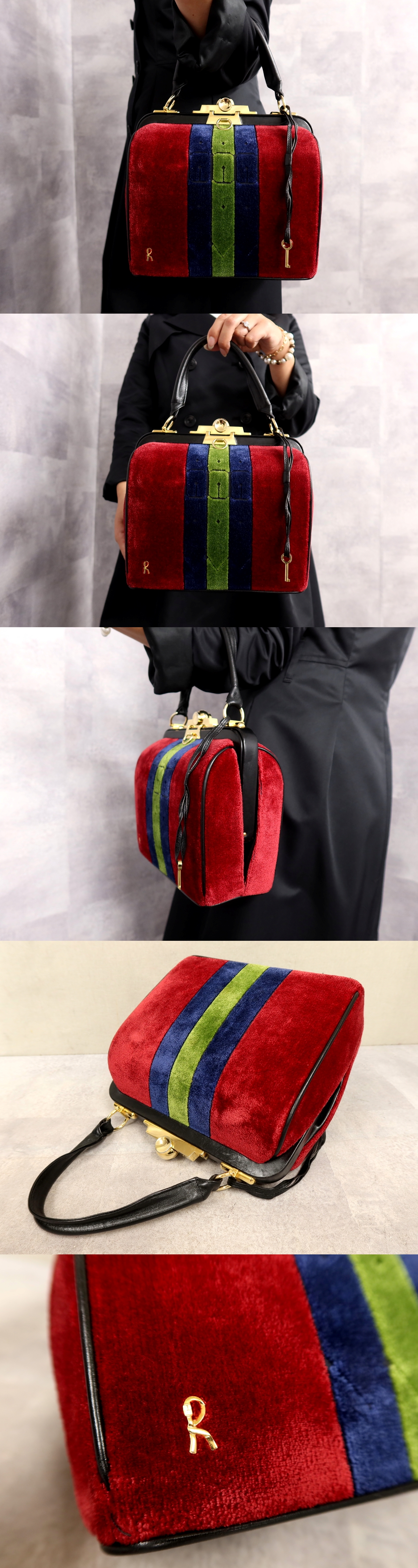 超美品●Roberta di Camerino ロベルタ ディ カメリーノ●バゴンギ●ベロア カーフ レザー●がま口 ハンド バッグ●マルチカラー●Js62356 收藏