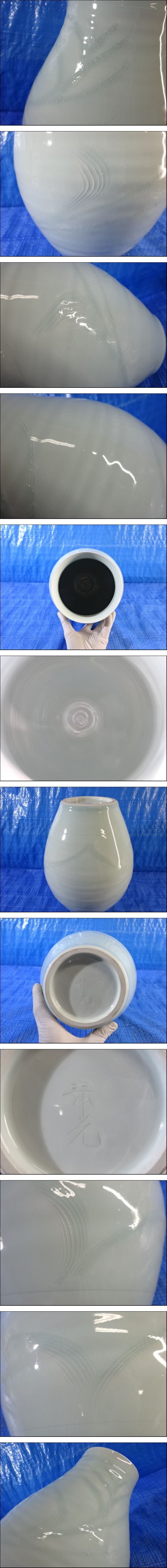 O-68青白磁 花瓶 砥部焼窯元 緑光窯 亀田緑光作 花器 華道具 茶道具 床飾 陶器 陶芸品 伝統工芸品 陶印 共箱フラワーベース インテリア雑貨 收藏