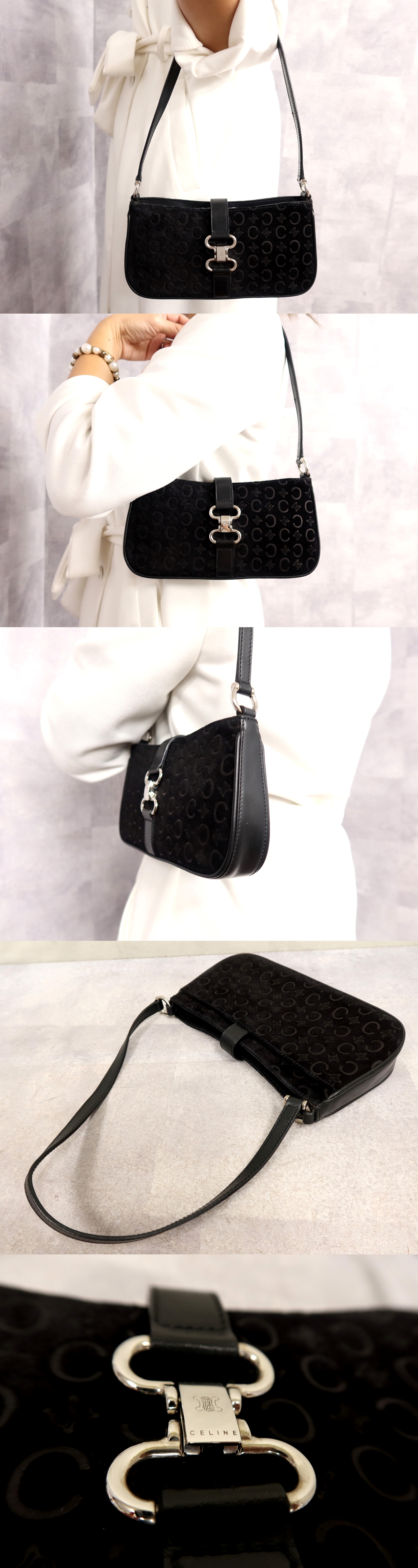 ●超美品●CELINE セリーヌ●Cマカダム●スエード カーフ レザー 本革●ミニ アクセサリー ポーチ ショルダー バッグ●黒●SV金具●Js62581 收藏
