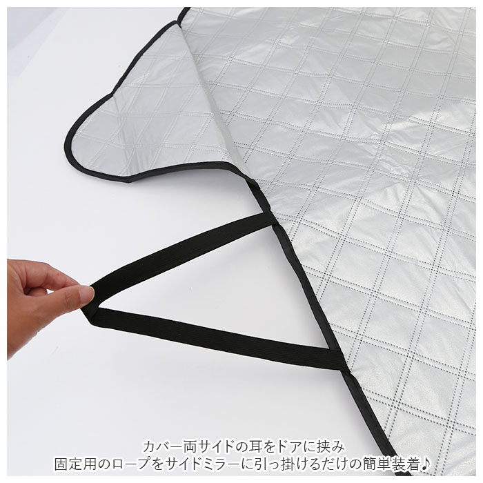 | 商品説明 | ・・フロントガラスの保護に!車用サンシェードが新登場。 ・夏の日差しや冬の雪対策まで、幅広いシーンで活躍する外付けタイプ。 ・カバーはアルミ箔+PEフィルム+綿の三重構造の撥水性と耐久性のある素材。 ・カバーの先端に内蔵された3つの磁石がズレを防止。 ・カバー両サイドの耳をドアに挟み、固定用のロープをサイドミラーに引っ掛けるだけの簡単装着。 ・折りたためるから、持つ運びはもちろん車内での保管もしやすい。 |
