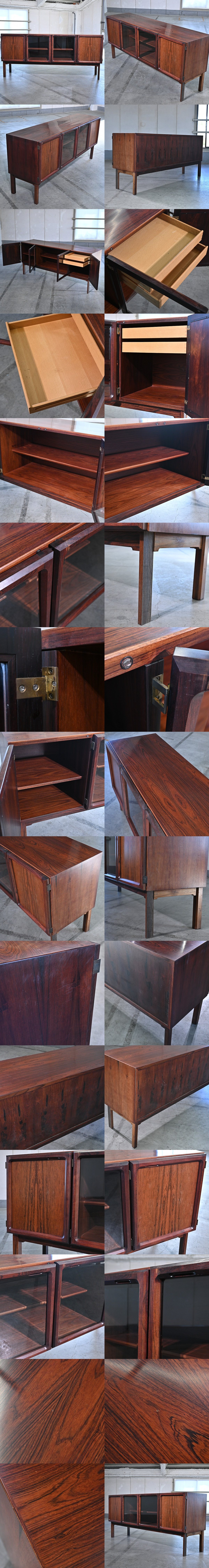 山品木工 サイドボード ブラジリアンローズウッド材 キャビネット 収納 引き出し 棚 ビンテージ 北欧風 リビング 書斎 レトロ 飾り台