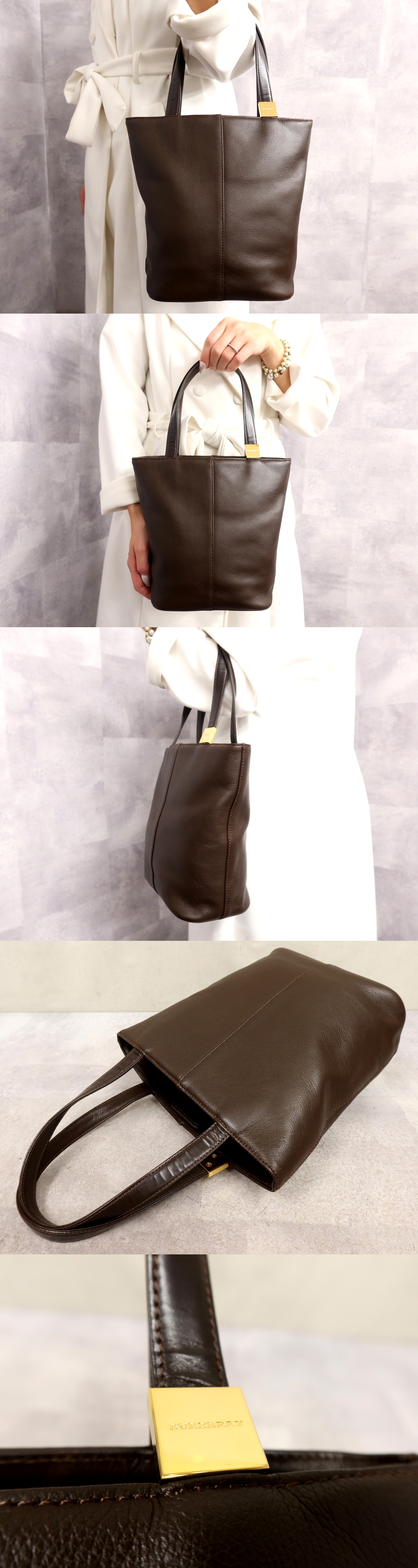 ●超美品●BURBERRY バーバリー●内ノバチェック●ロゴプレート●カーフ レザー 本革●ハンド バッグ●ブラウン●ゴールド金具●Js62851 收藏
