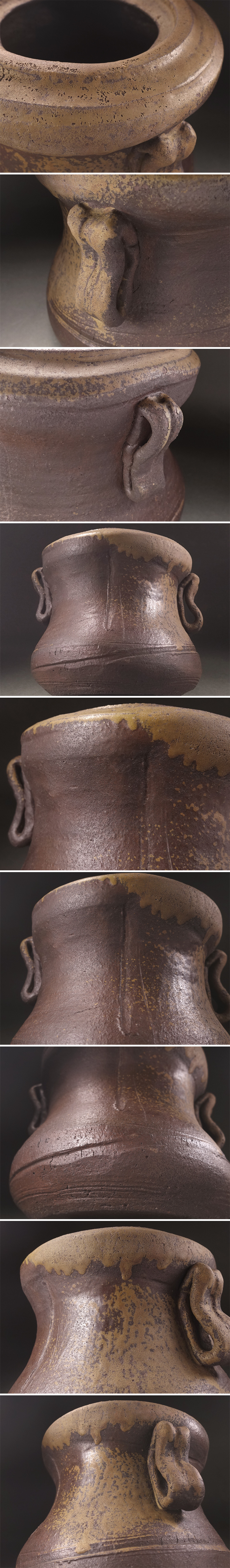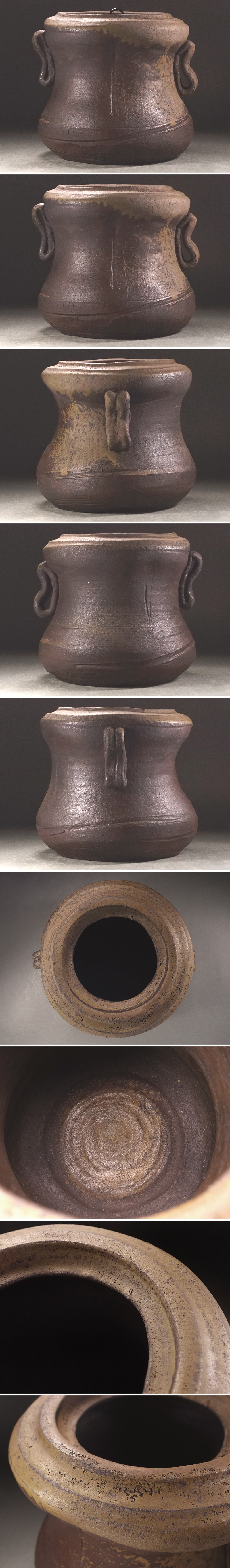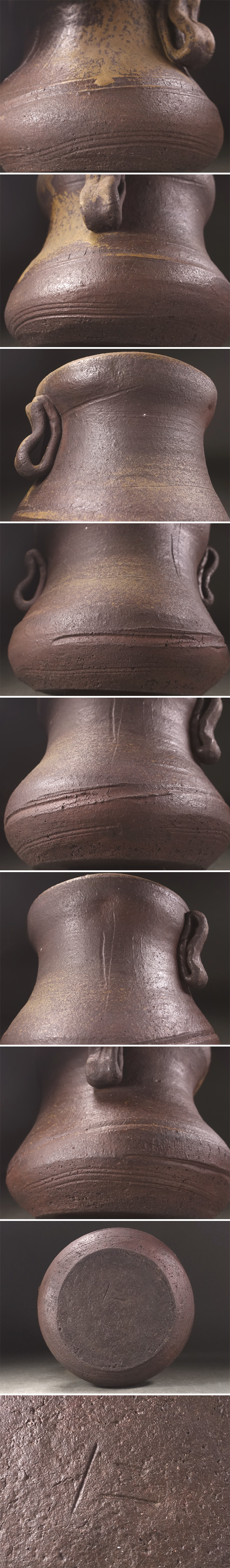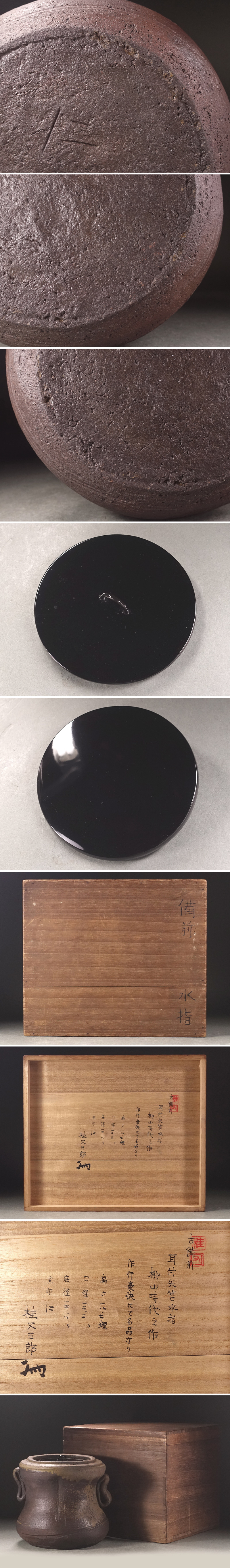 ∇花∇桂又三郎鑑定 桃山時代 古備前矢筈口耳付水指 流れ胡麻の景 作域豪快にて名品なり 底に窯印 桂又三郎鑑定箱付 收藏