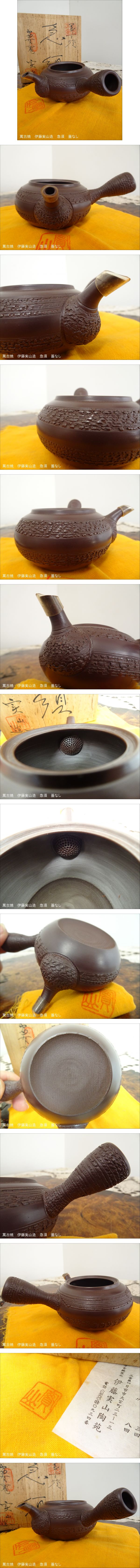 煎茶道具 萬古焼 伊藤実山造 急須 栞 共布 共箱 蓋なし