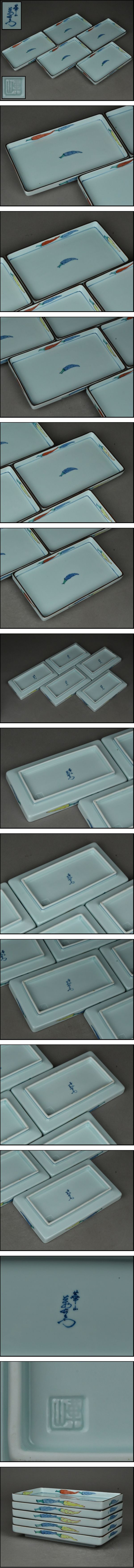 【NNK】有田焼【華山萬右衛門】色絵 胡椒 焼皿揃 長方皿 五客 和皿 角皿 懐石道具 D7-1209-8 收藏