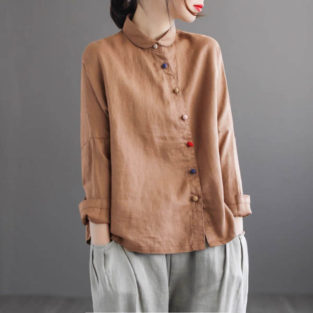 ☆ キャメル×長袖 ☆ M ☆ シャツ レディース おしゃれ ブラウス ブラウス レディース シャツブラウス コットン リネン 半袖 收藏