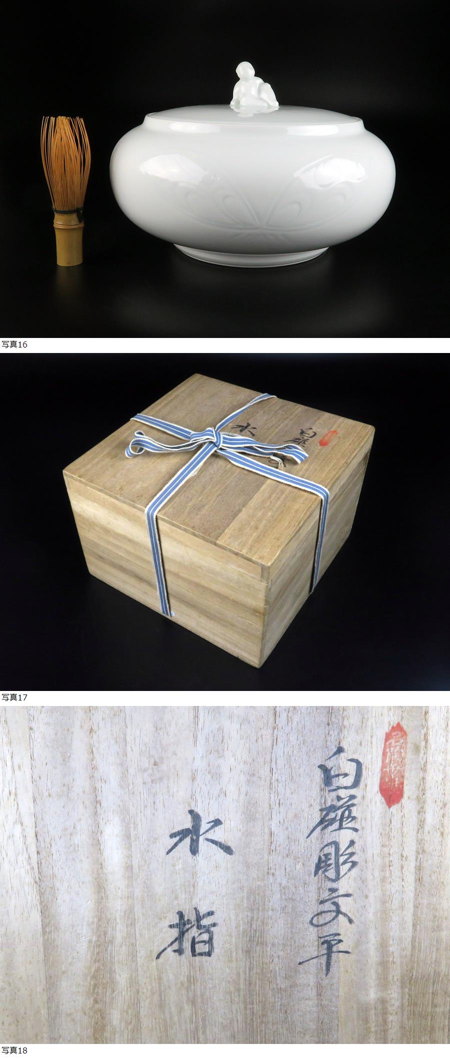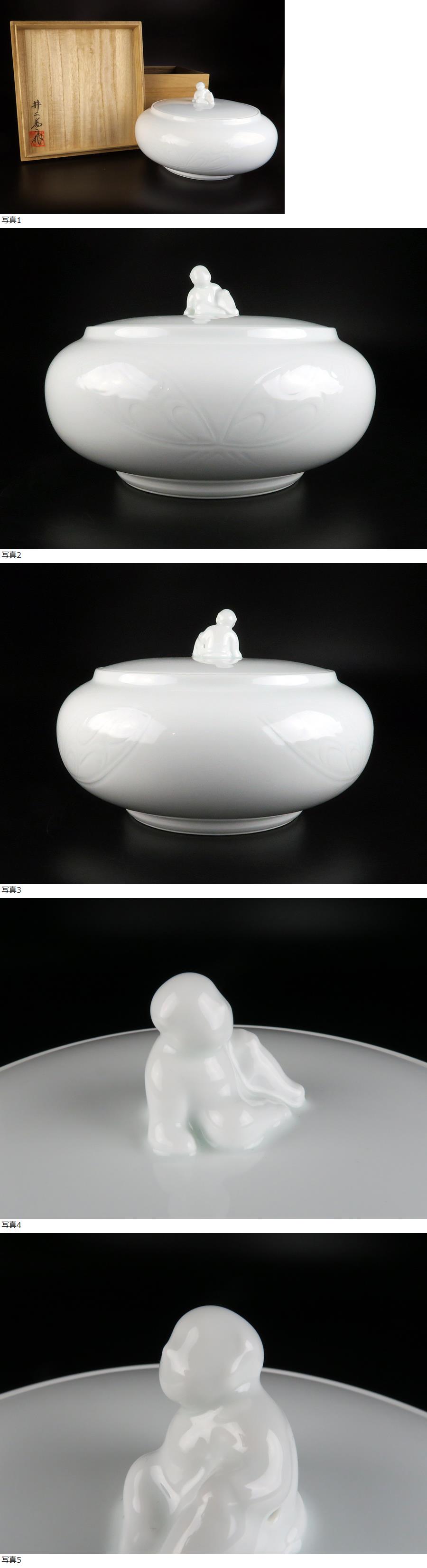 サイズ(約) 高さ 16㎝ 直径 24㎝ 重量 2.14㎏ 付属品 共箱 本物保証 人間国宝 井上萬二 本人作 白磁彫文平 水指 共箱 百貨店購入品 旧家蔵出し、人間国宝井上萬二作、水指でございます。 百貨店購入の間違いの無いお品でございます。 出来栄え素晴らしい極上の逸品でございます。 状態良品でございます。 |