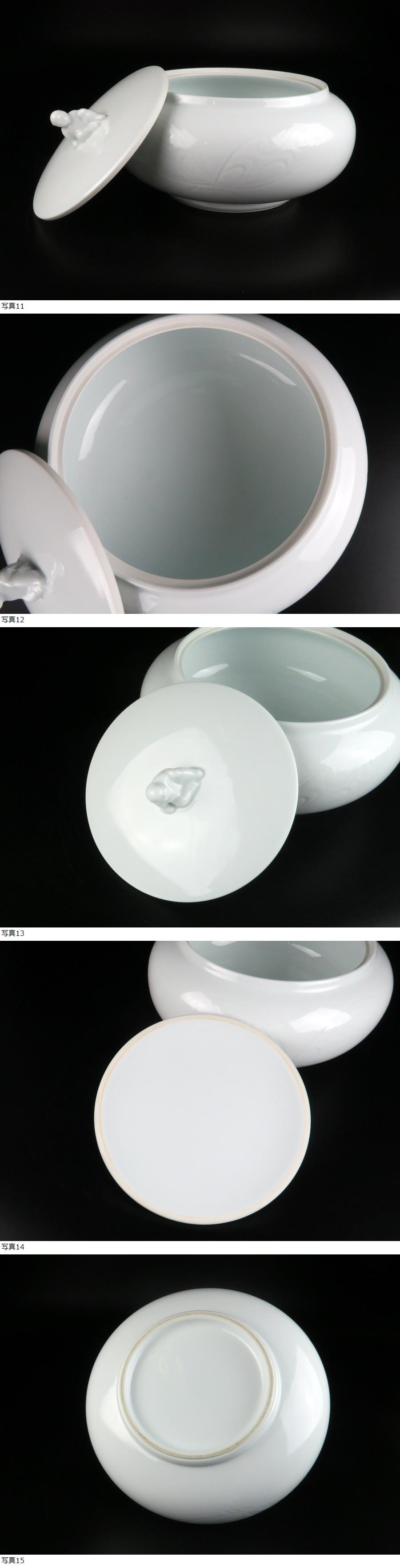 魁◆本物保証 人間国宝 井上萬二 本人作 白磁彫文平 水指 共箱 百貨店購入品 收藏
