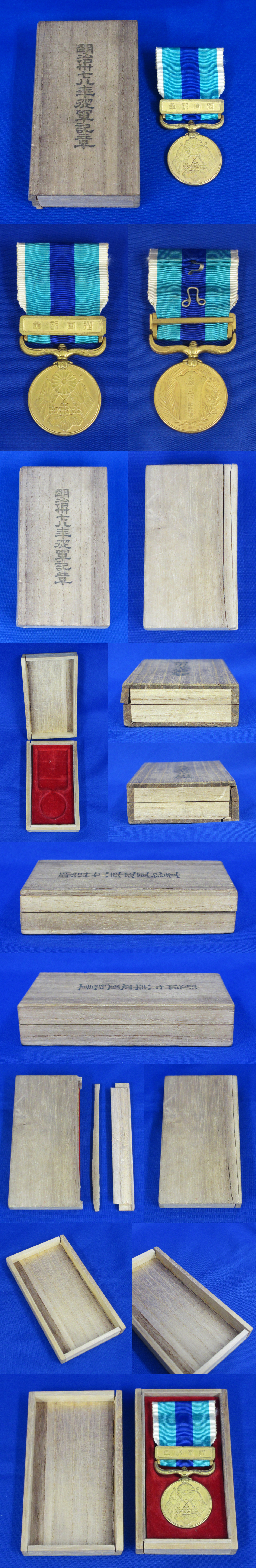 ★勲章 旧日本軍 明治三十七八年従軍記章(共箱付/木割れあり)★ab2