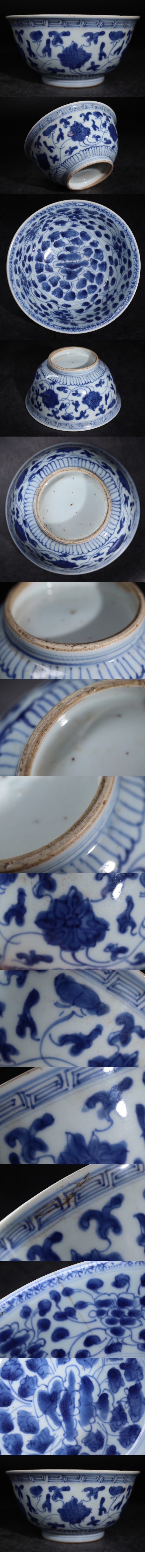 | 時代 染付 草花紋 茶碗 / 中国美術 清 新渡 茶器 鉢 煎茶道具 煎茶飾 .G3597 |