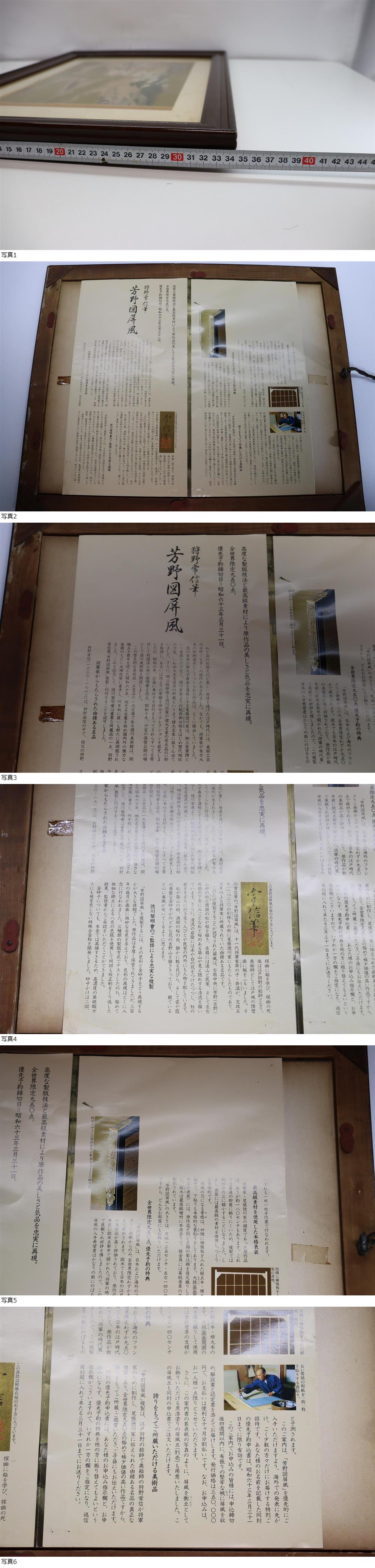 | ■商品詳細■ 商品:狩野常信筆 芳野図屏風 サイズ(約):縦34.5×横42.5cm 数ある中からこの商品を閲覧していただきありがとうございます。 額入りの狩野常信筆 芳野図屏風になります。 高度な製版技法と最高級素材により原作品の美しさと気品を忠実に再現。 全世界限定950点の限定品です。 祖父の倉庫で保管されていたものですのでそこそこ古い物だと思います。 コレクションとして飾るのもおしゃれです。 この機会にいかがでしょうか? お好きな方にお譲りできればと思います。 長期保管による汚れや傷などあります。 外側は簡単に掃除しましたが掃除しきれていない埃などの汚れはあるかと思います。 ■注意事項■ 最近神経質な方の質問や入札が多いので通電のみの確認、動作未確認、飾り物としての表記がある場合はジャンク扱いでお願いいたします。 落札後のキャンセルやクレームなどで困ってしまうので知識のある方に入札お願いしたいです。 一度人の手に渡った中古品ということをご理解の上、ご入札お願いいたします。 中古品のため傷や汚れなどあります。 写真のものが全てになります。 商品の詳細は画像にて確認お願いいたします。 素人ですので見落としがあるかもしれないということをご了承ください。 最近落札後のキャンセルが多いので落札の意思がない方のご入札はお控えください。 落札後3日以上連絡がない場合は取引できないと判断し、 「落札者様都合によりキャンセル」とさせていただきます。 ノークレームノーリターンでお願いいたします。 完品をお求めの方、神経質な方は入札ご遠慮ください。 こちらの不手際の場合を除き、返品や返金はいたしません。 何らかの不具合がある場合はメッセージをお願いいたします。 配送中の破損に関しては配送業者に連絡をしてください。 ■発送方法■ ・ゆうパック(ゆうパケットmini、ゆうパケットポストなど) ※配送中の損害が出た場合に補償が受けれるように複数選択できるようにしてあります。 ※こちらでは配送中の損害は負担できないので手厚い補償が希望の方はゆうパックをお選びください。 ・直接引き取り可能(大阪府南部) ※発送の場合は必ずゆうパックをお選びください。 ゆうパックを選んでから直接引き取りを希望されても対応できかねますのでご注意ください。 梱包は再利用の段ボールを使用することが基本ですのでご了承お願いいたします。 ■支払い方法■ !かんたん決済 最後まで目を通していただきありがとうございます。 | |||