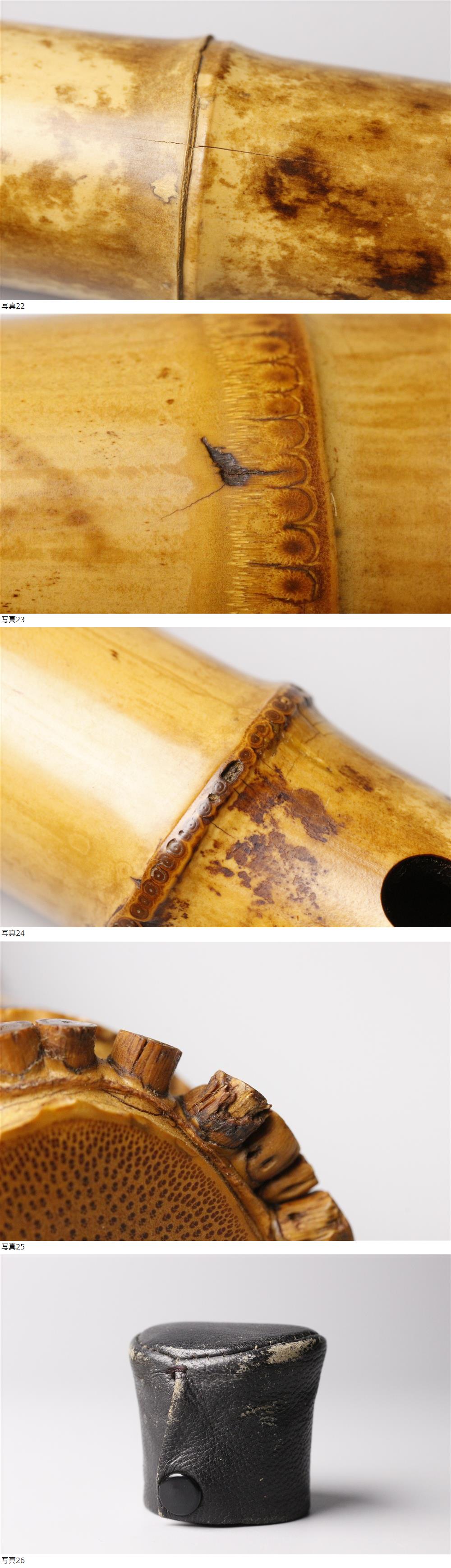 ① 260123G11* * * 商品詳細 * * * ここでしか出逢うことのできない唯一の美をご紹介させて頂きます。 竹の持つしなやかな美しさが活かされた尺八のご紹介です。 歌口は金縁、中継は銀と高級感のある造りです。 容山の銘が入った逸品です。 この機会に是非お求めください。 ■商品内容/尺八、歌口キャップ ■サイズ/全長58cm 歌口:外径4㎝ 内径2㎝ ■状態/スレ、キズ、シミ、割れ、欠け、欠損部、中継部にへこみ、変色がございます。 ※写真にてご確認、ご了承の上ご入札下さい。 * * * 支払詳細 * * * !かんたん決済 * * * 発送詳細 * * * 入金確認後3営業日以内に発送致します。 ※直接引き取りも可能です。 60~160サイズにつきましては 佐川急便、ゆうパックのどちらかで発送いたします。 ゆうパック発送の場合、弊社の発送日から追跡サービスに問合せ番号が反映されるまで 約1日ほどお時間がかかりますのでご了承下さい。 * * * 注意事項 * * * 運送中の破損があった場合は速やかに当社までご連絡下さい。 保険を利用するのに受取連絡後に運送会社による現場での破損状況確認が必要となります。 勝手に返送されますと保険の適用外となりますのでご注意ください。 * * * * * * お問い合わせ:082-236-8669 |
