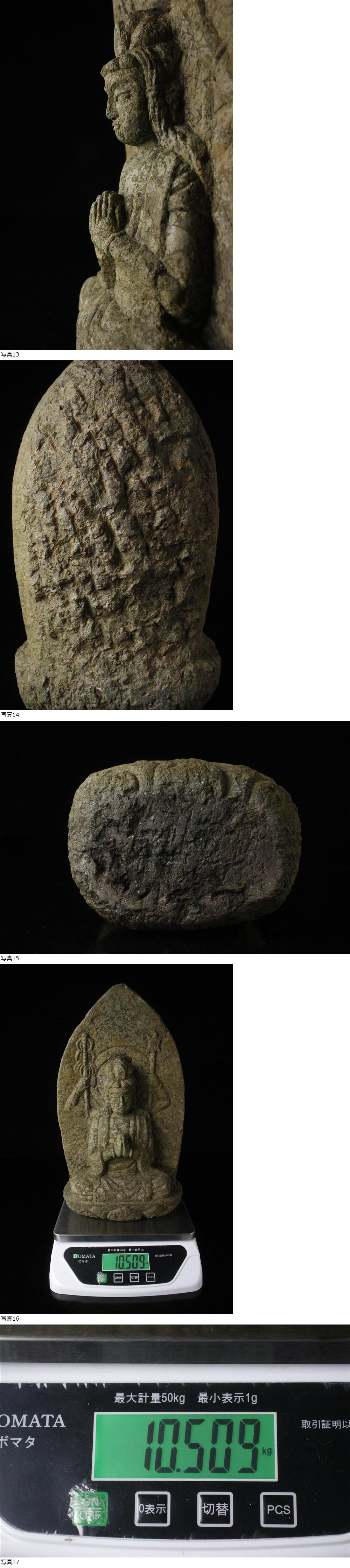 26020541* * * 商品詳細 * * * ここでしか出逢うことのできない唯一の美をご紹介させて頂きます。 長い歴史の風格を纏う、貴重な時代石仏のご紹介です。 高さ約33cm、重さ約10kgと存在感があり、 特有の風合いと長年の風化による自然な風合いが、深い歴史の趣を醸し出しています。 凛とした表情、丁寧に彫られた蓮華座など、素朴ながらも熟練の技を感じさせる逸品です。 静謐な和の空間を演出するお品を この機会に是非ご愛蔵ください。 ■サイズ/横19cm×縦33..5cm×奥行13㎝ 重量:10.509kg ■状態/スレ、傷、欠けがございます。 ※写真にてご確認、ご了承の上ご入札下さい。 * * * 支払詳細 * * * !かんたん決済 * * * 発送詳細 * * * 入金確認後3営業日以内に発送致します。 ※直接引き取りも可能です。 60~160サイズにつきましては 佐川急便、ゆうパックのどちらかで発送いたします。 ゆうパック発送の場合、弊社の発送日から追跡サービスに問合せ番号が反映されるまで 約1日ほどお時間がかかりますのでご了承下さい。 * * * 注意事項 * * * 運送中の破損があった場合は速やかに当社までご連絡下さい。 保険を利用するのに受取連絡後に運送会社による現場での破損状況確認が必要となります。 勝手に返送されますと保険の適用外となりますのでご注意ください。 * * * * * * お問い合わせ:082-236-8669 |