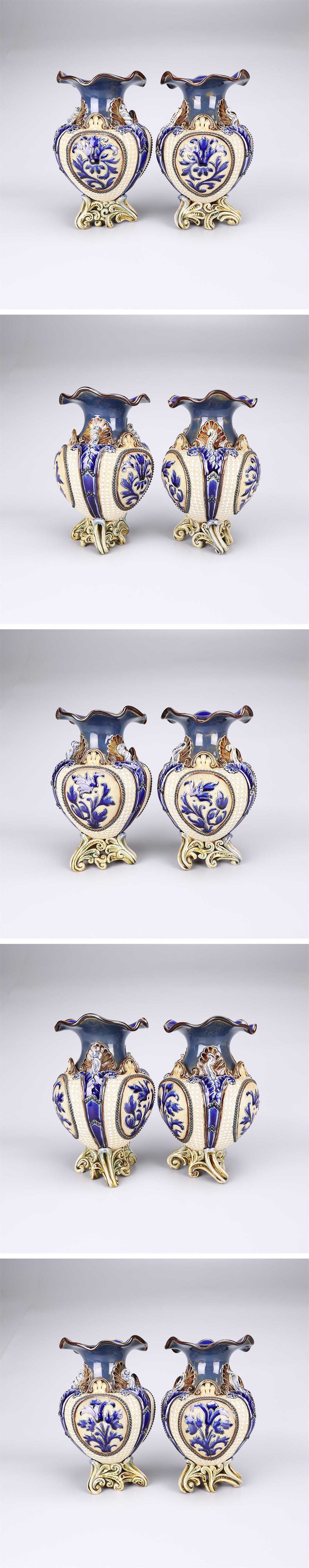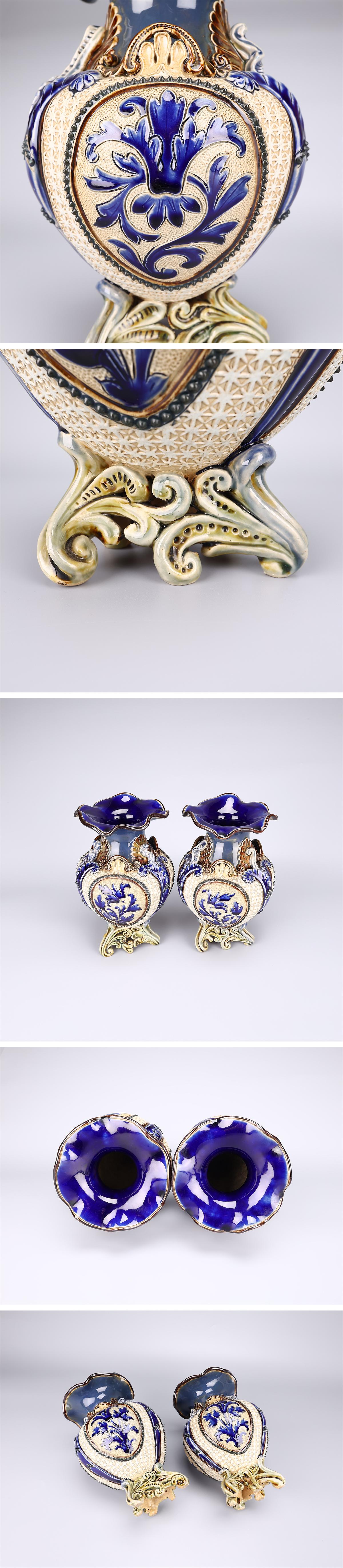 【吉】CN704 1900年代初頭 Royal Doulton 【ロイヤルドルトン】 Doulton Lambeth ドルトン・ランベス窯 花瓶 2点 一対/本物保証 美品T! 收藏