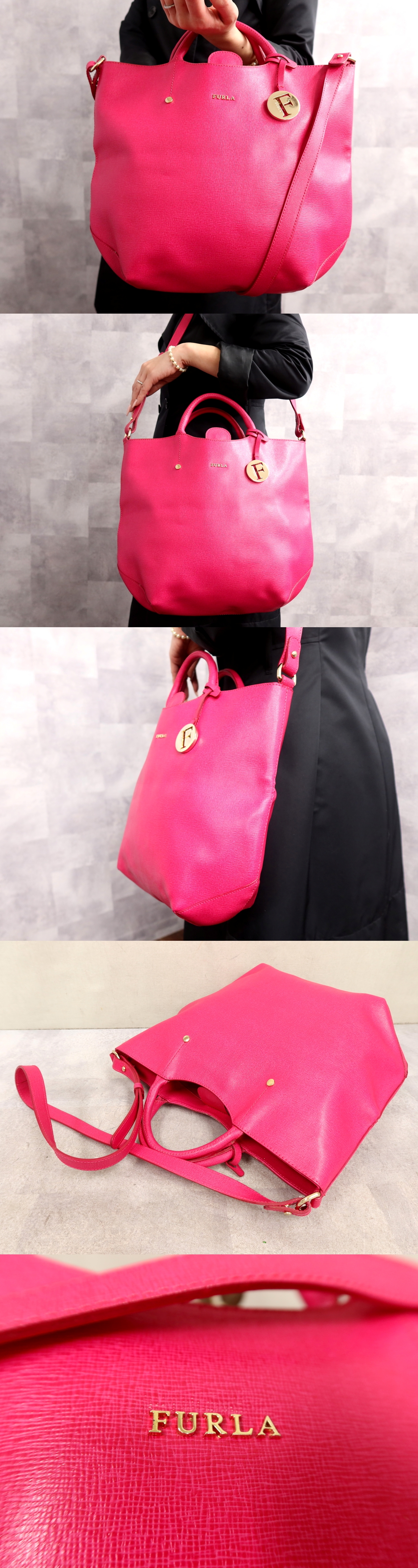 ●超美品●FURLA フルラ●アリッサ●カーフ レザー 本革●2way ハンド バッグ●マゼンタ ピンク●ゴールド金具●A4 収納 かばん●Js65149 收藏