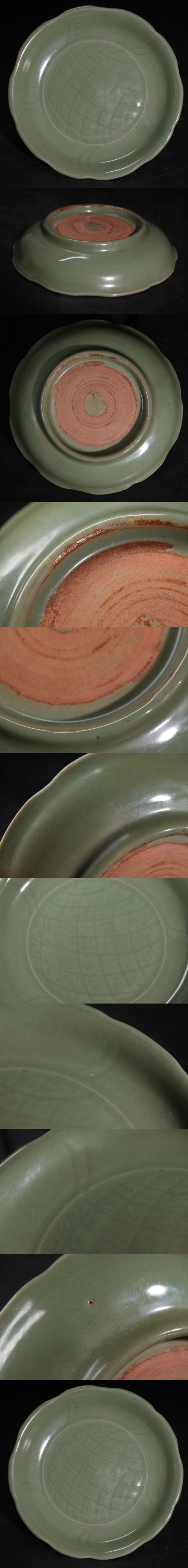 | 時代 青磁 陰刻 皿 / 中国美術 茶器 煎茶道具 検索: 龍泉窯 天龍寺 .G3871 |